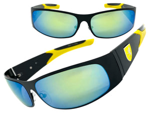 Classic Contemporary Modern Wrap Style SUNGLASSES Sleek Black & Yellow Frame 3727