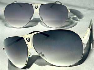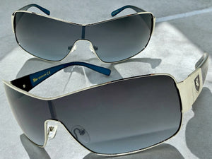 Classic Contemporary Modern Wrap Shield Style SUNGLASSES Sleek Silver Frame 3410