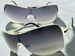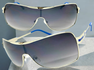 Classic Contemporary Modern Wrap Shield Style SUNGLASSES Sleek Silver Frame 3728