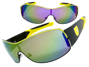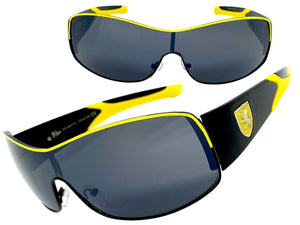 Classic Contemporary Modern Wrap Style SUNGLASSES Sleek Black & Yellow Frame 3734
