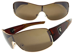 Classic Contemporary Modern Wrap Style SUNGLASSES Sleek Gold & Brown Frame 3734