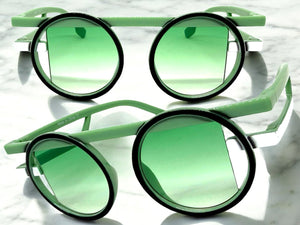 Classic Elegant 90's Modern Retro Style SUNGLASSES Round Pastel Green Frame 1249