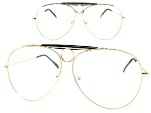 Oversized Modern Retro Aviator Style Clear Lens SUNGLASSES Large Gold Frame 4660