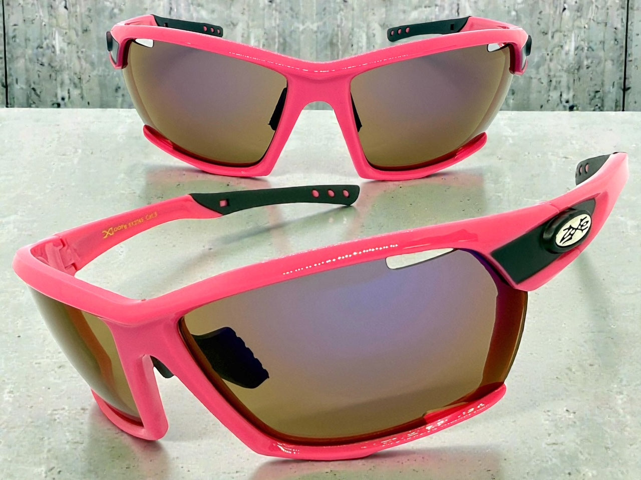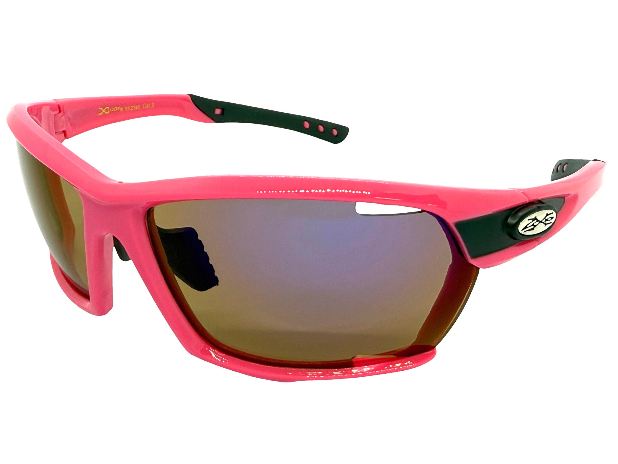 Classic Sporty Wrap Around Style SUNGLASSES Large Hot Pink Frame - Purple Lens 2745