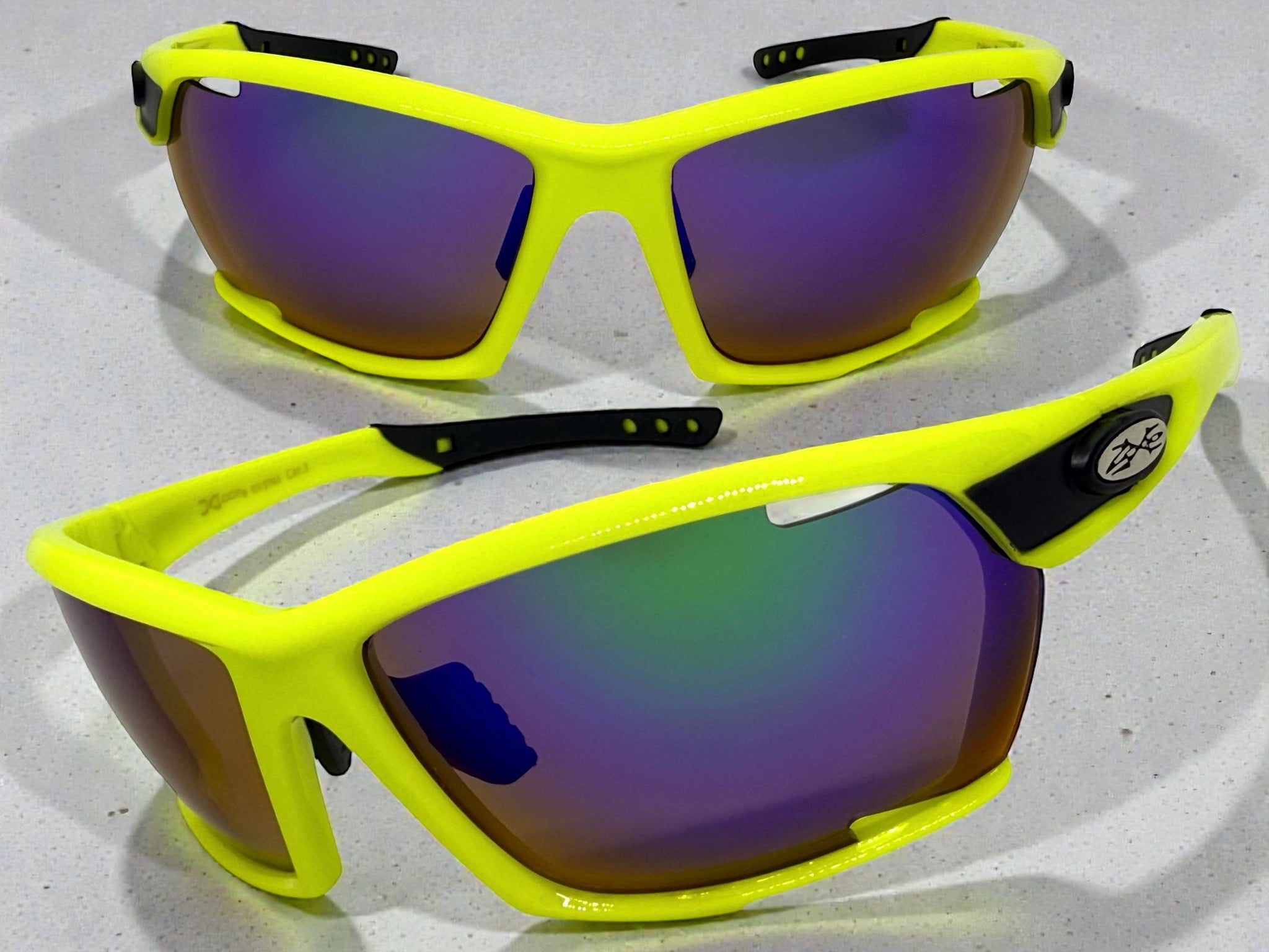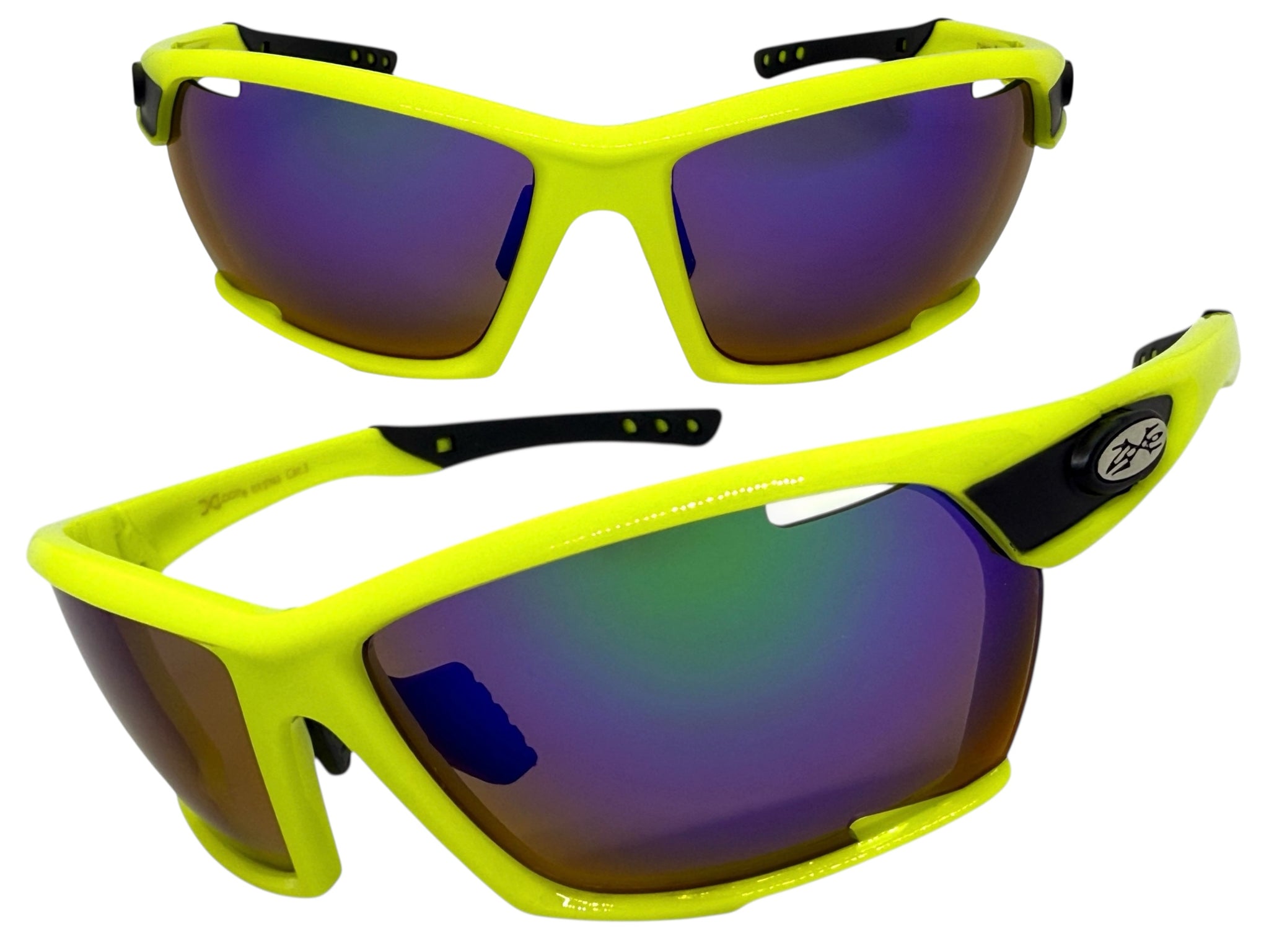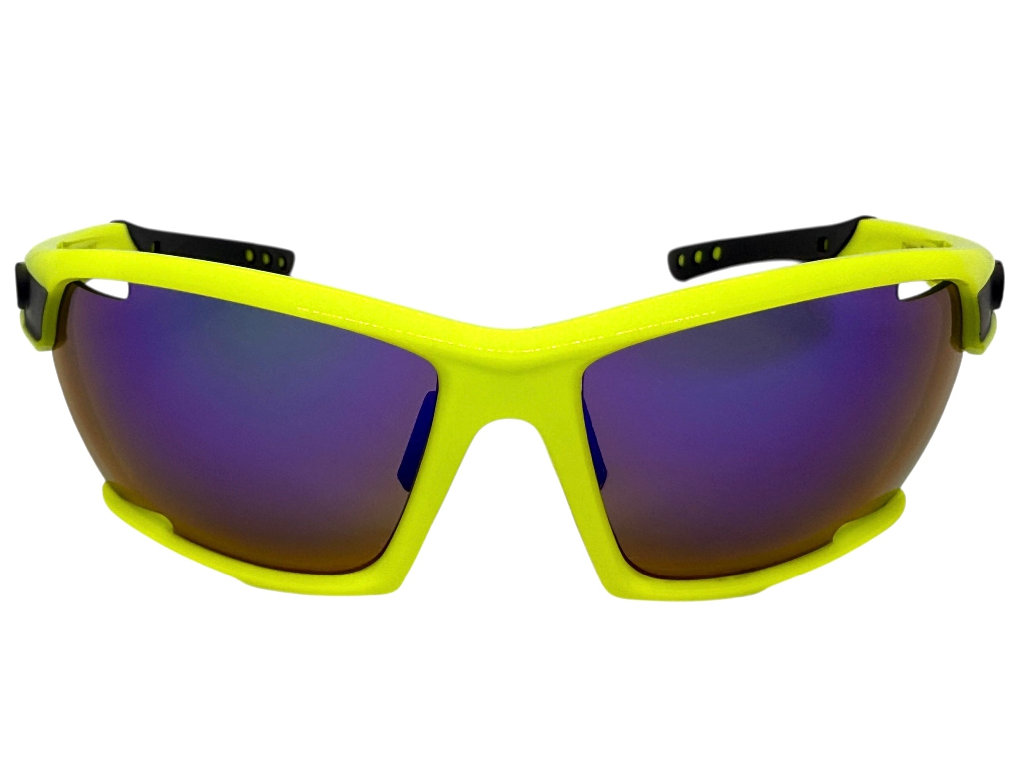 Classic Sporty Wrap Around Style SUNGLASSES Large Neon Yellow Frame - Blue Green Lens 2745