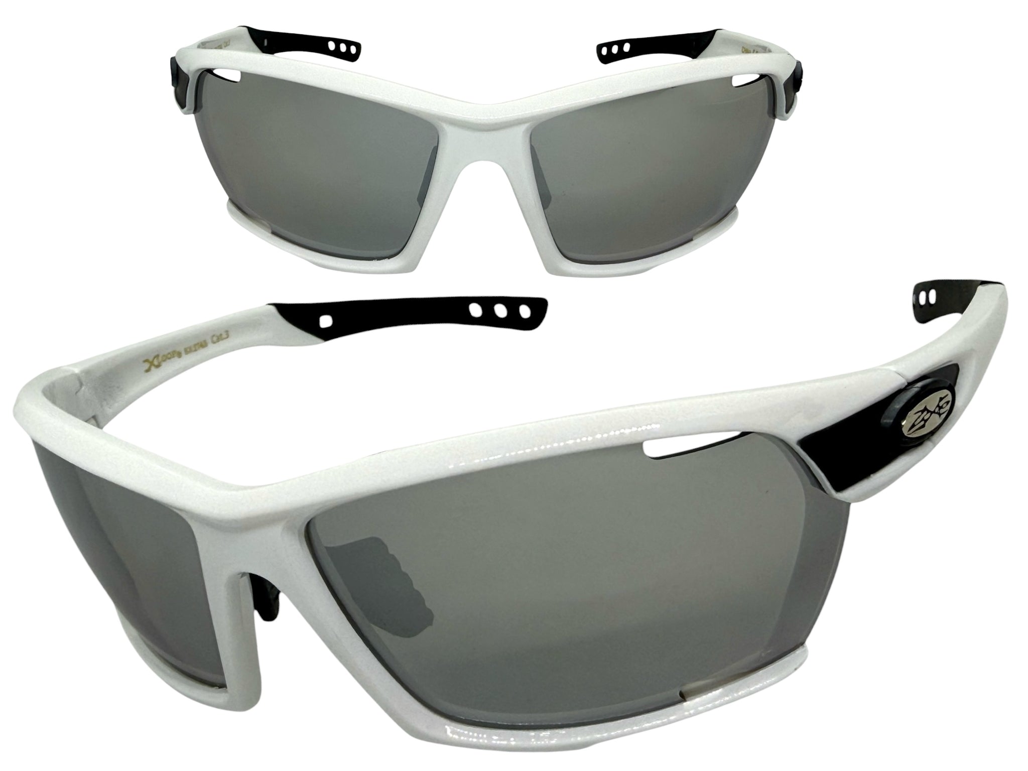 Classic Sporty Wrap Around Style SUNGLASSES Large White Frame - Chrome Lens 2745