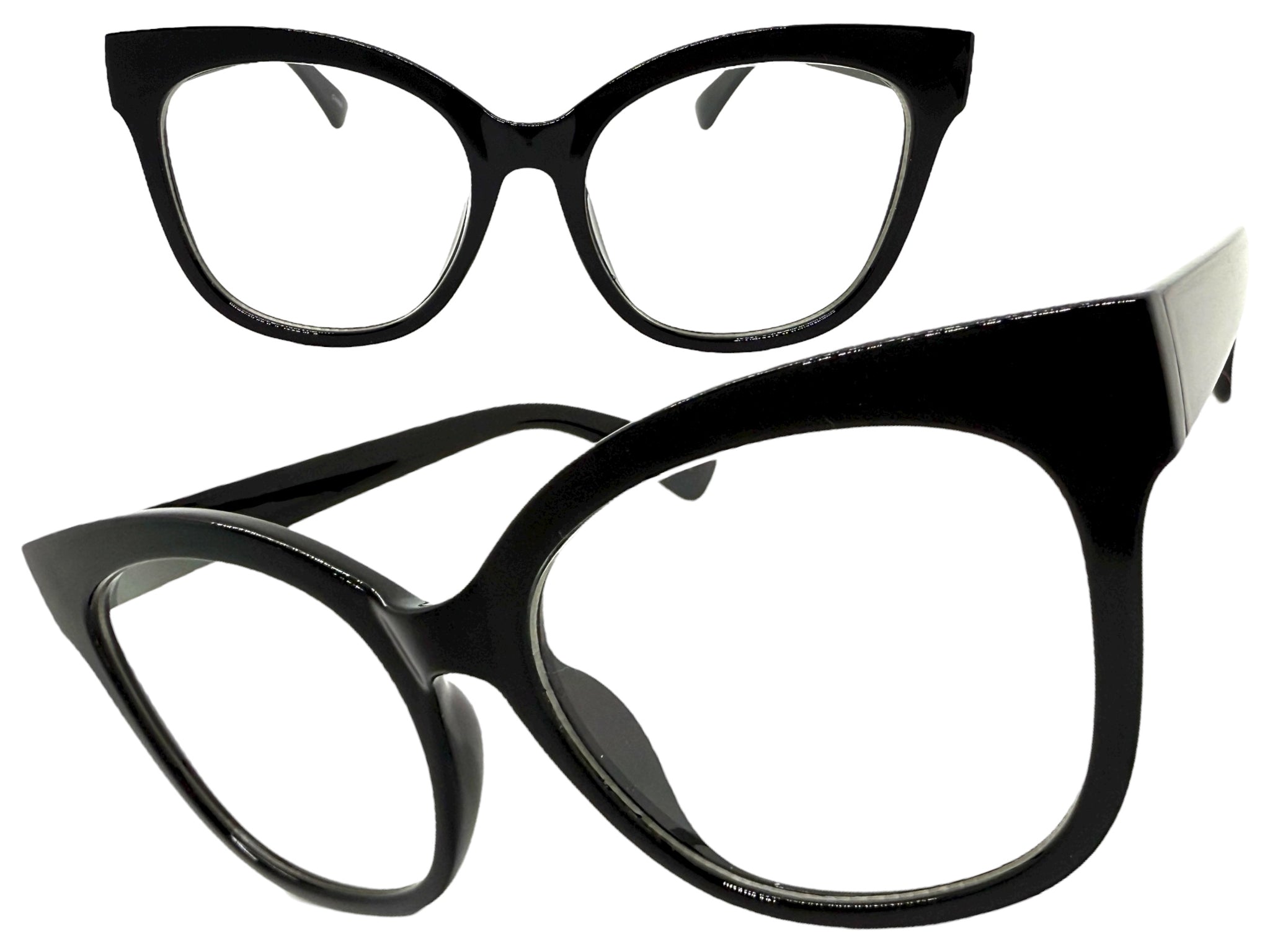 Oversized Exaggerated Vintage Retro Cat Eye Style Clear Lens EYEGLASSES Large Black Frame P6041