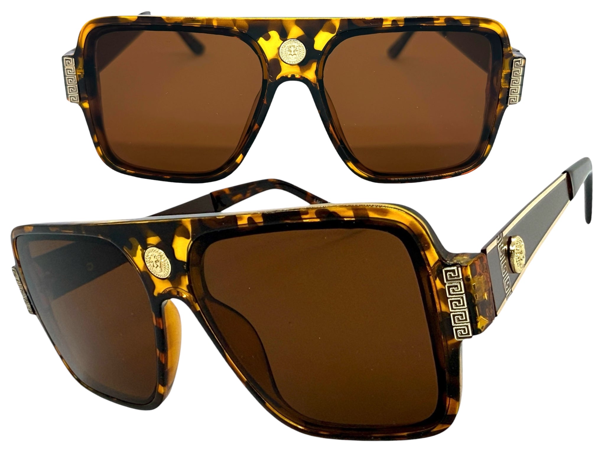 Classic Vintage Retro Luxury Hip Hop Rapper Style SUNGLASSES Large Tortoise & Gold Frame 3078
