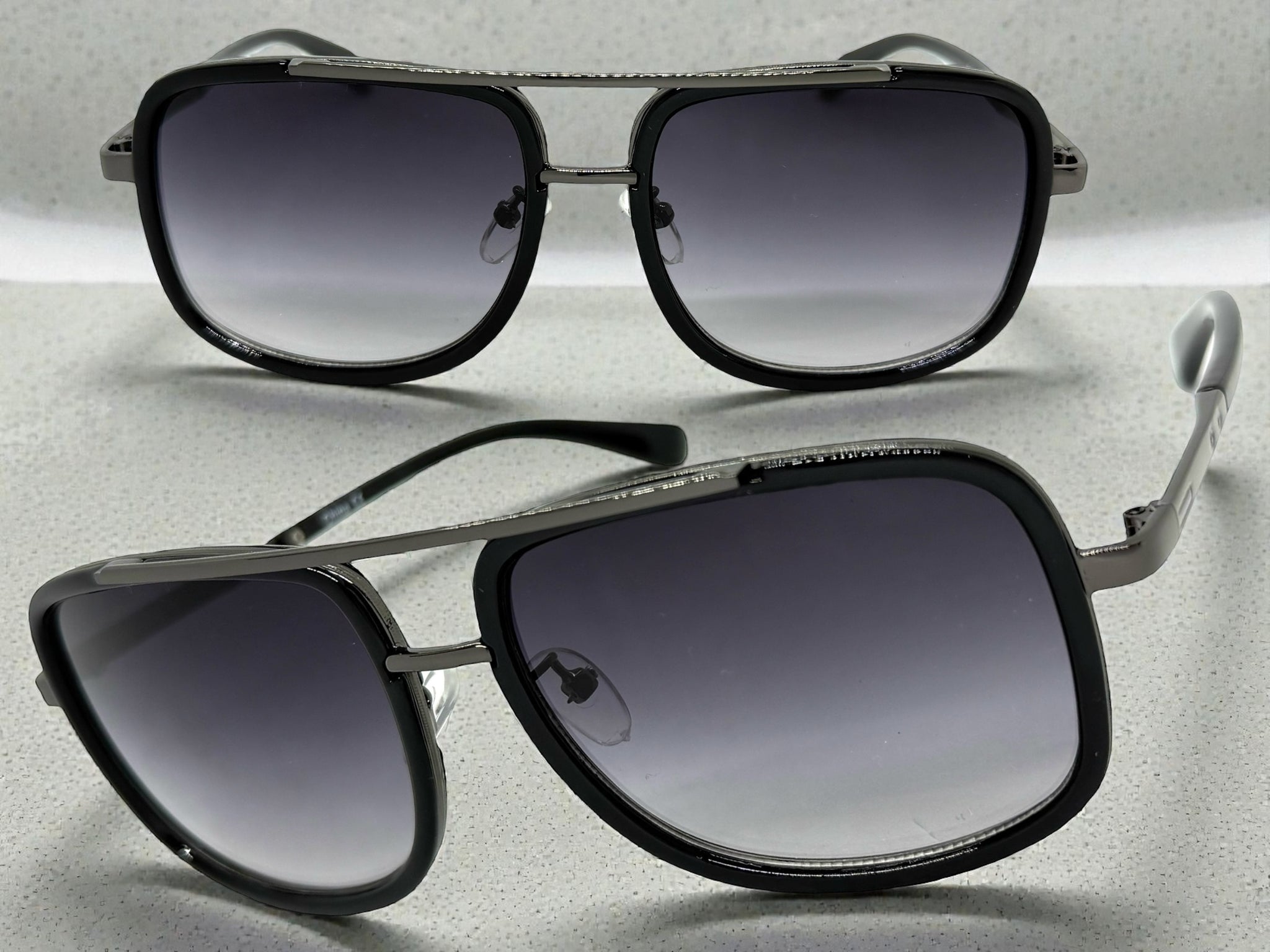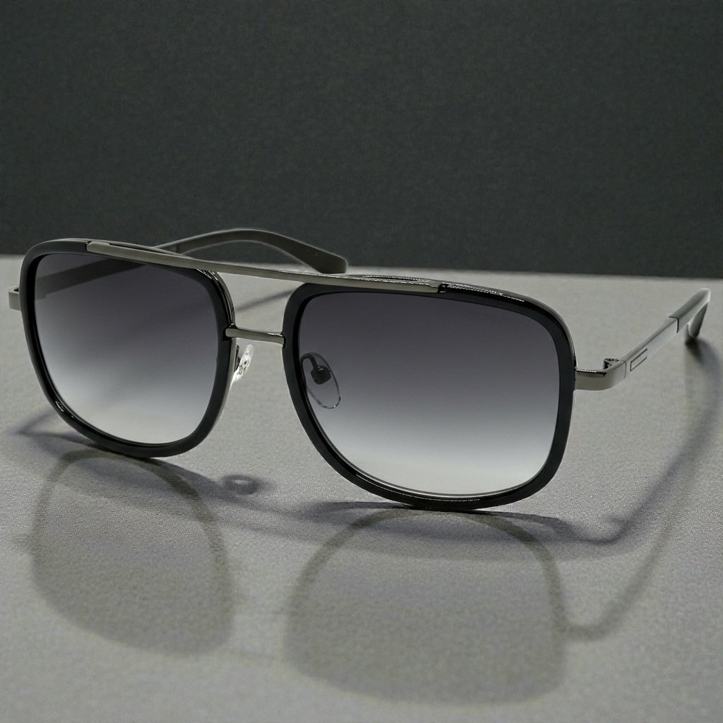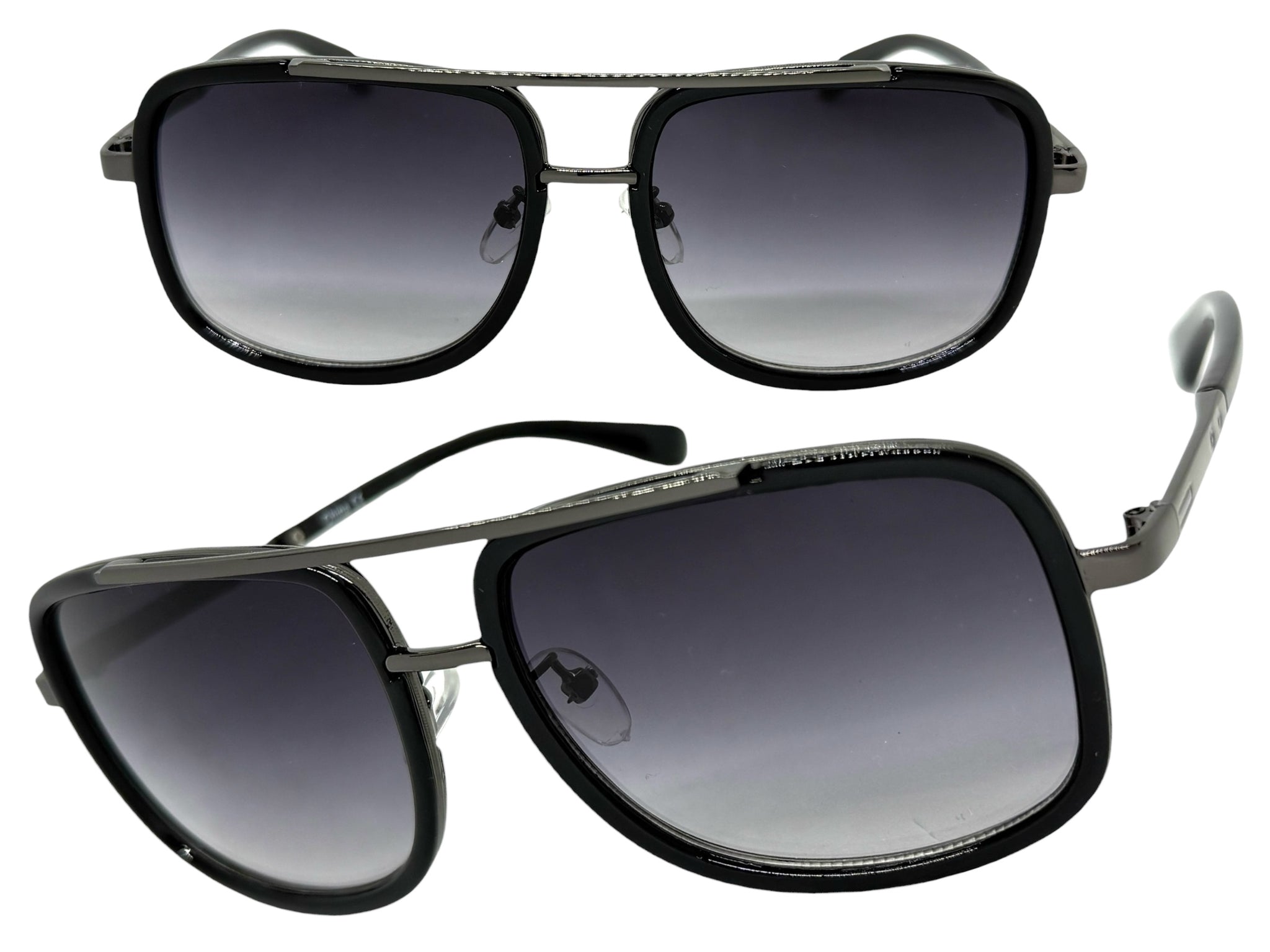 Classic Modern Retro Luxury Designer Style SUNGLASSES Square Black & Gunmetal Frame 3077