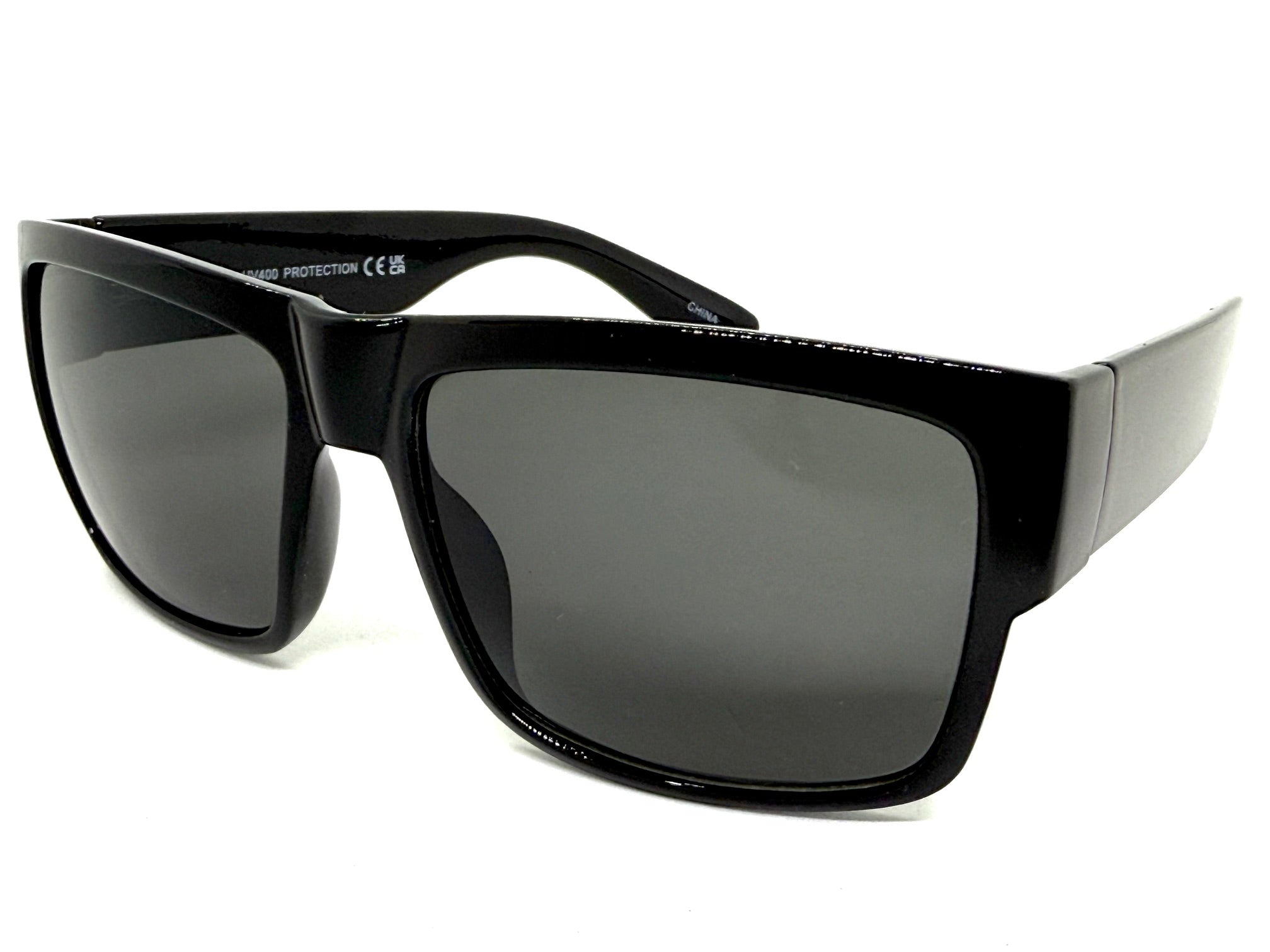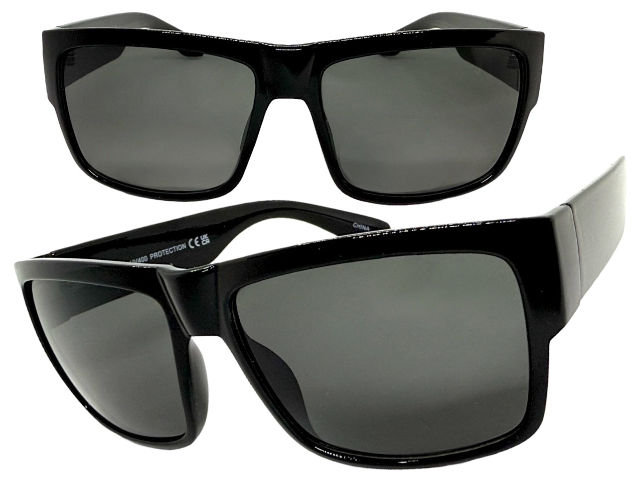 Classic Vintage Retro Hardcore Biker Gangster Style SUNGLASSES Thick Square Black Frame - Dark Lens 7232