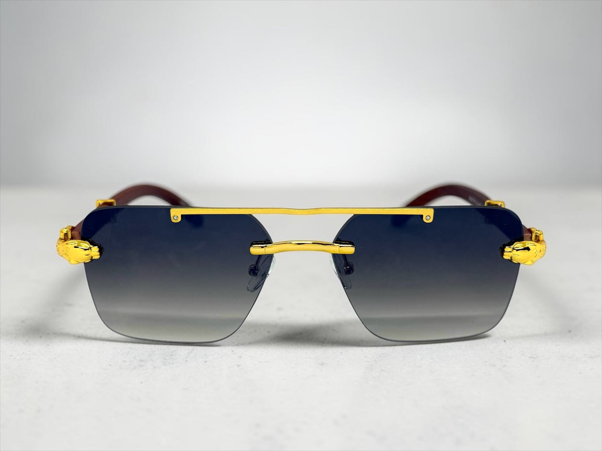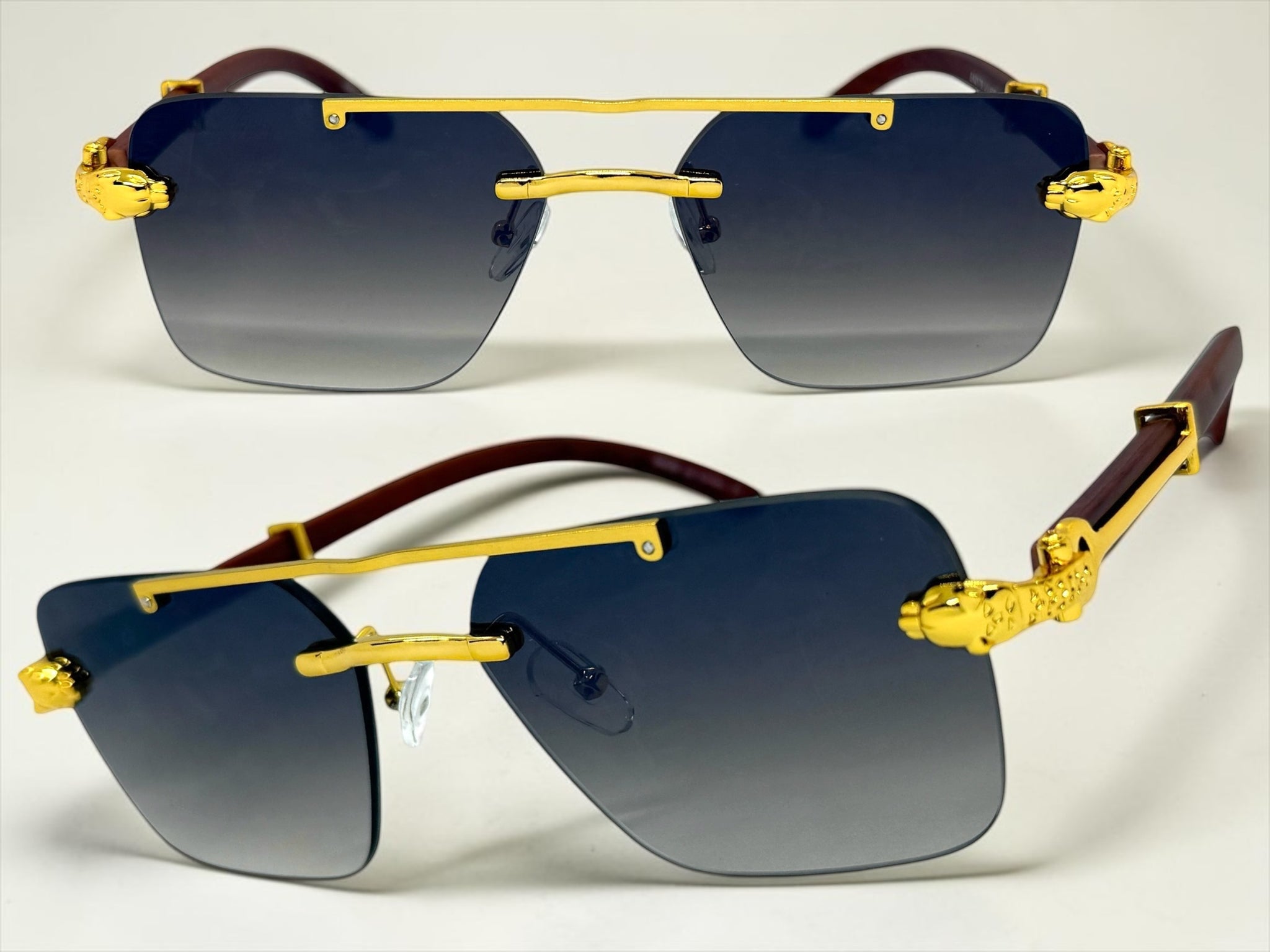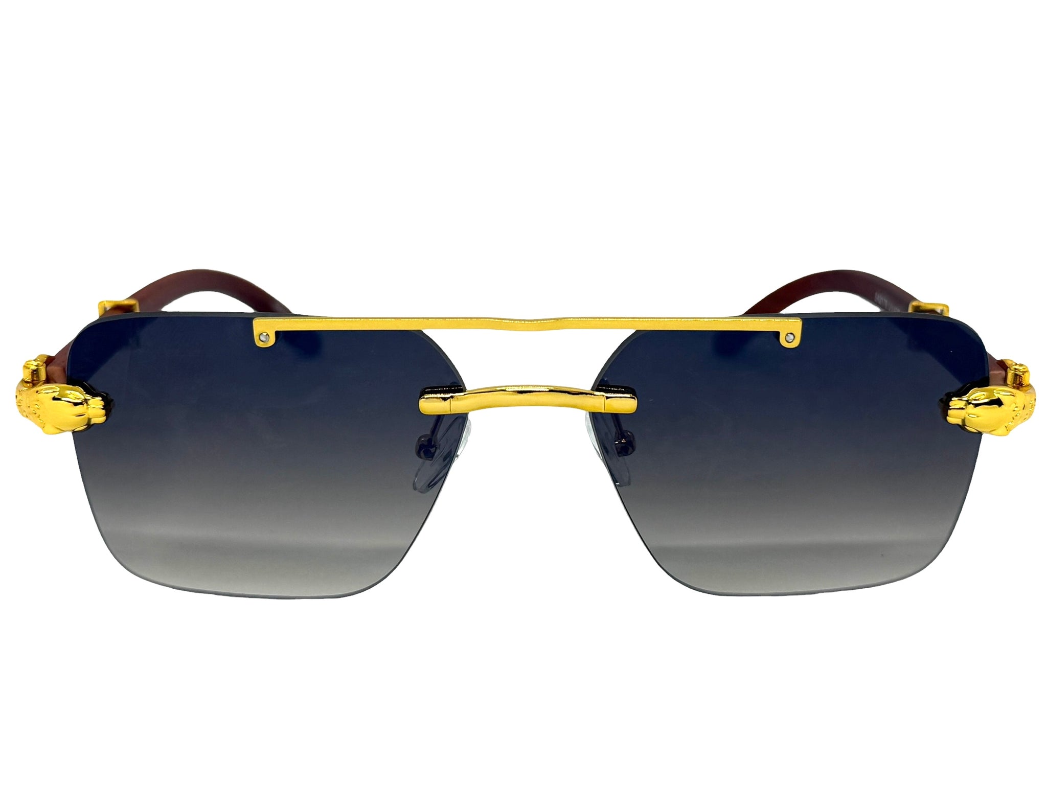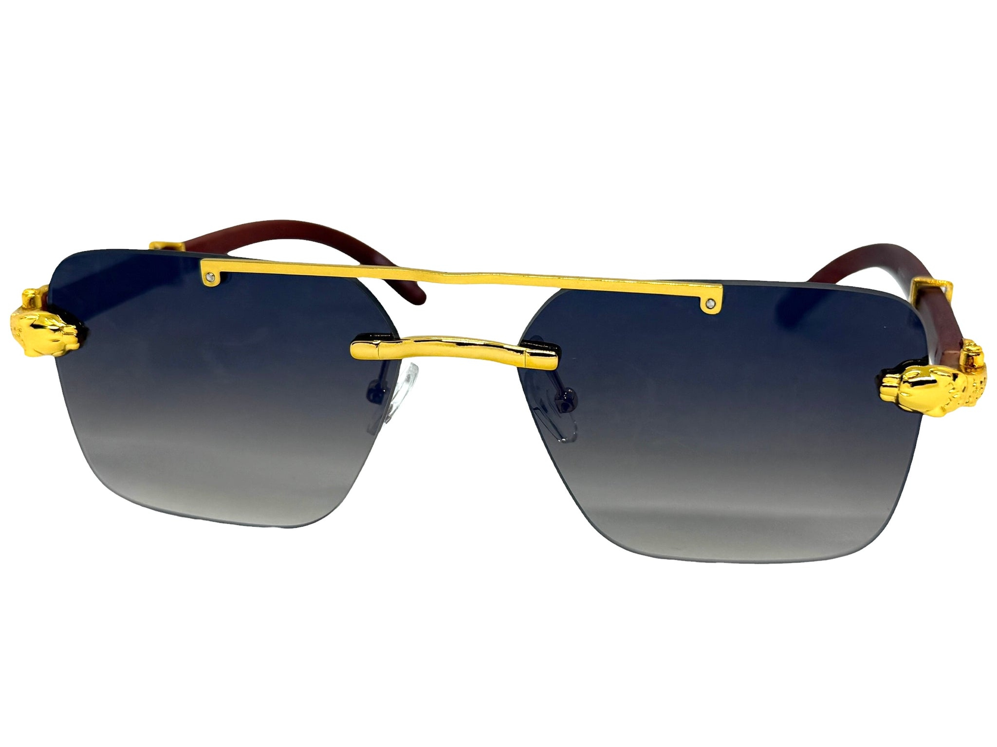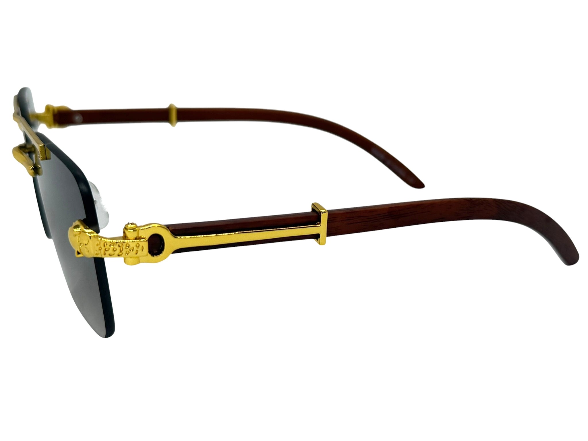 Classy Elegant Luxury Hip Hop Rapper Style SUNGLASSES Gold & Faux Wooden Frame - Gray Lens E2176