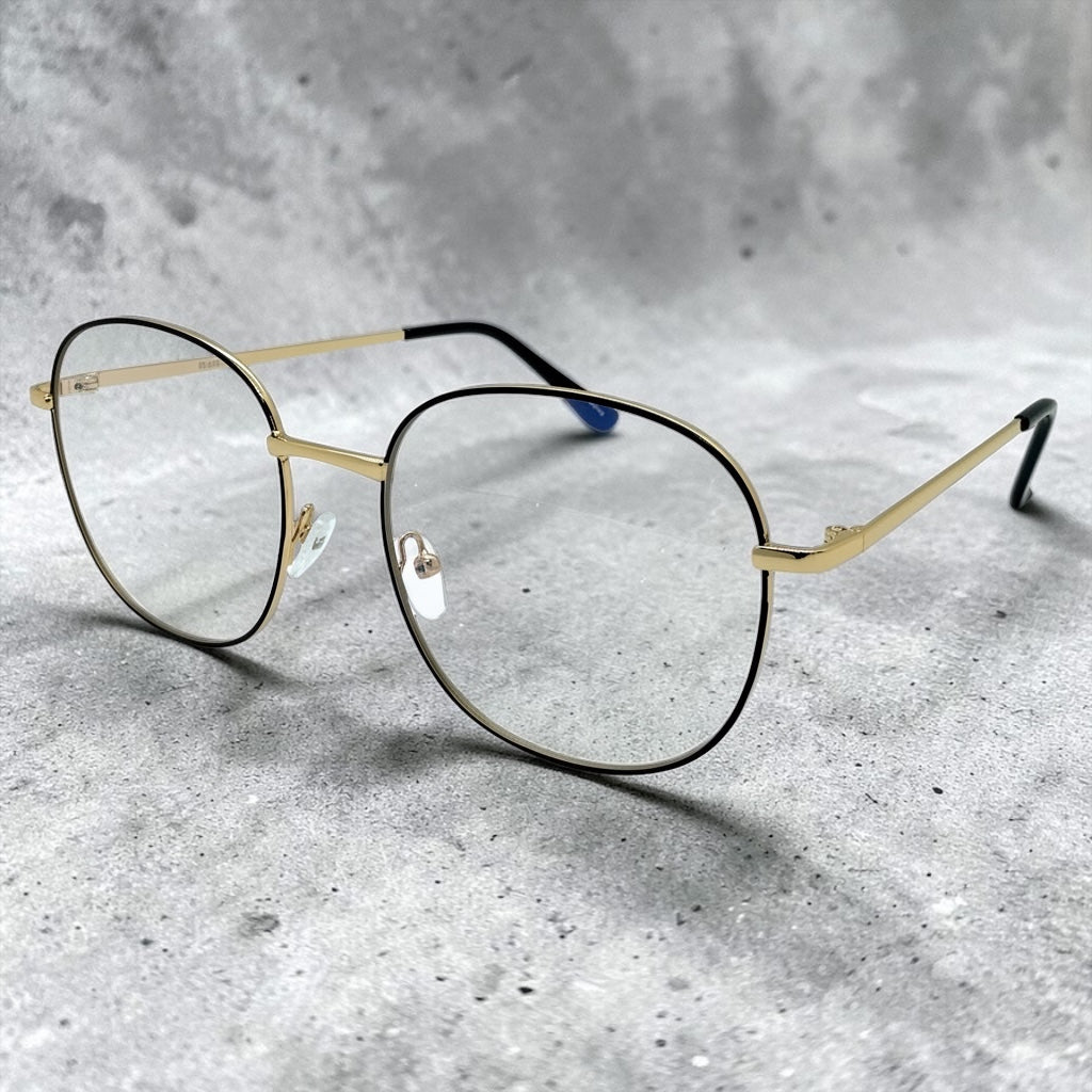 Exaggerated Classic Vintage Retro Style Clear Lens Blue Light Block Computer EYEGLASSES Square Gold Frame 5408