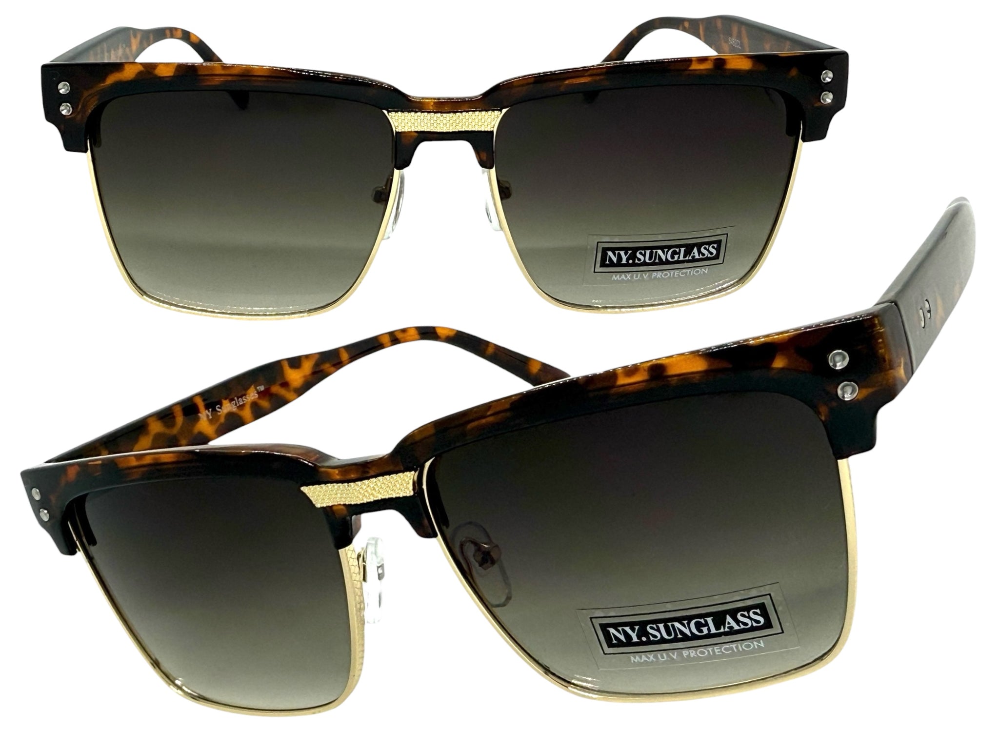 Classy Elegant Modern Retro Hip Hop Style SUNGLASSES Square Tortoise & Gold Frame 6462