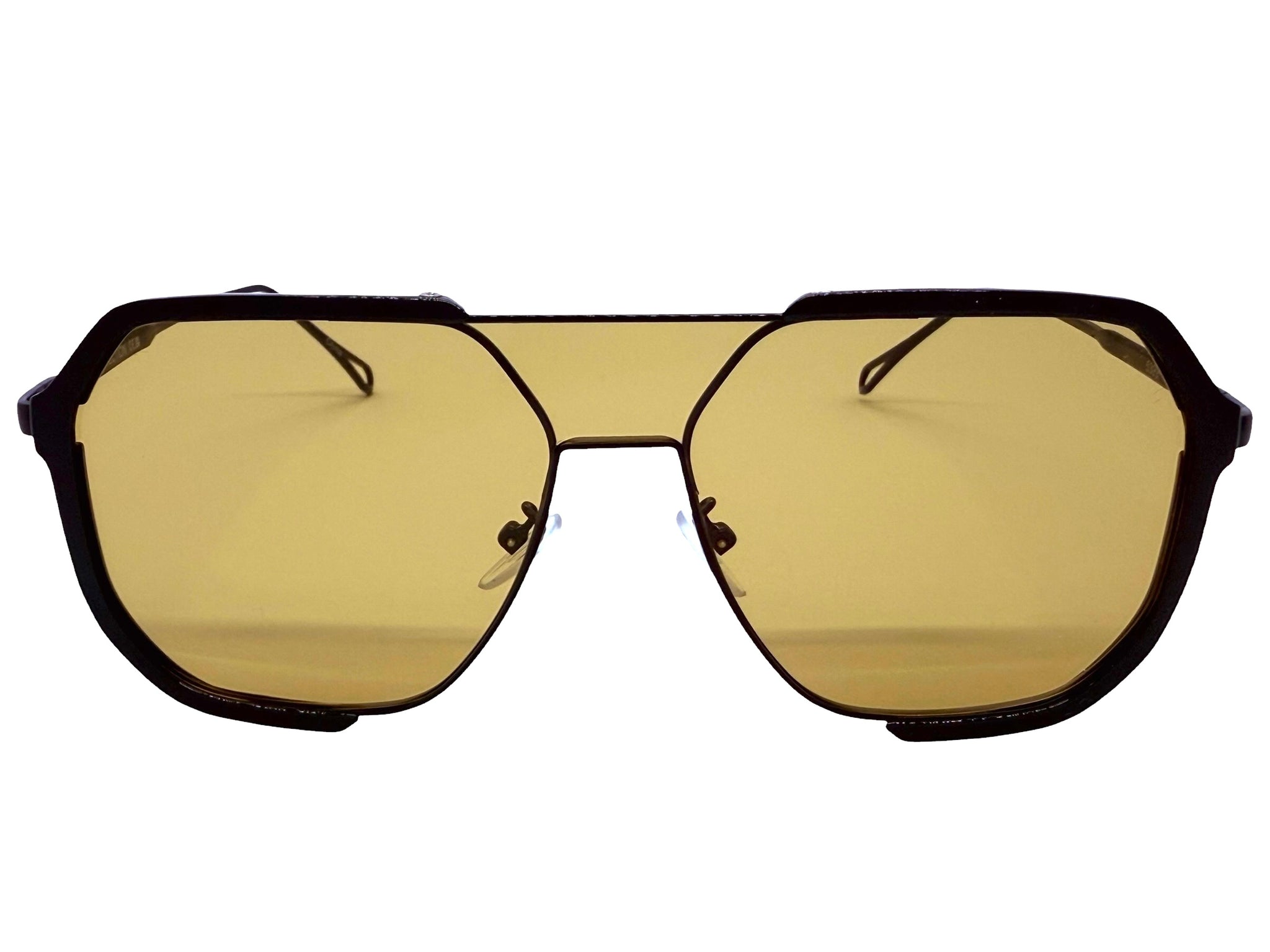 Classy Trendy Bold Modern Retro Shield Style SUNGLASSES Black Frame - Tea Tone Lens 5399