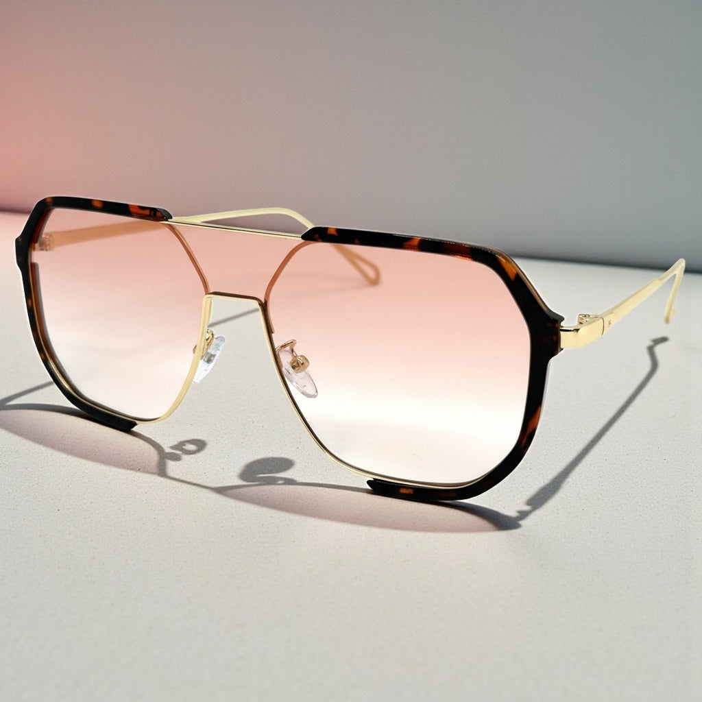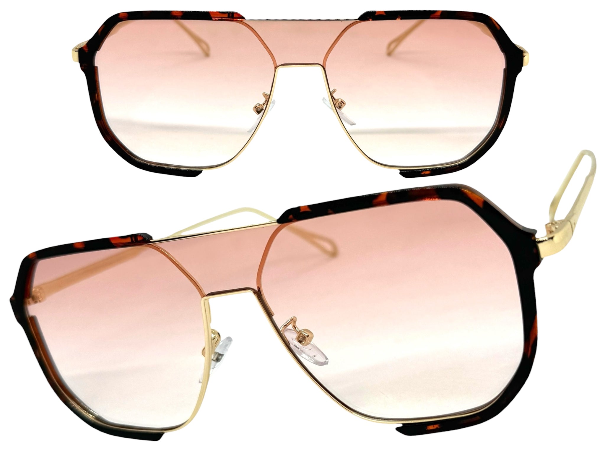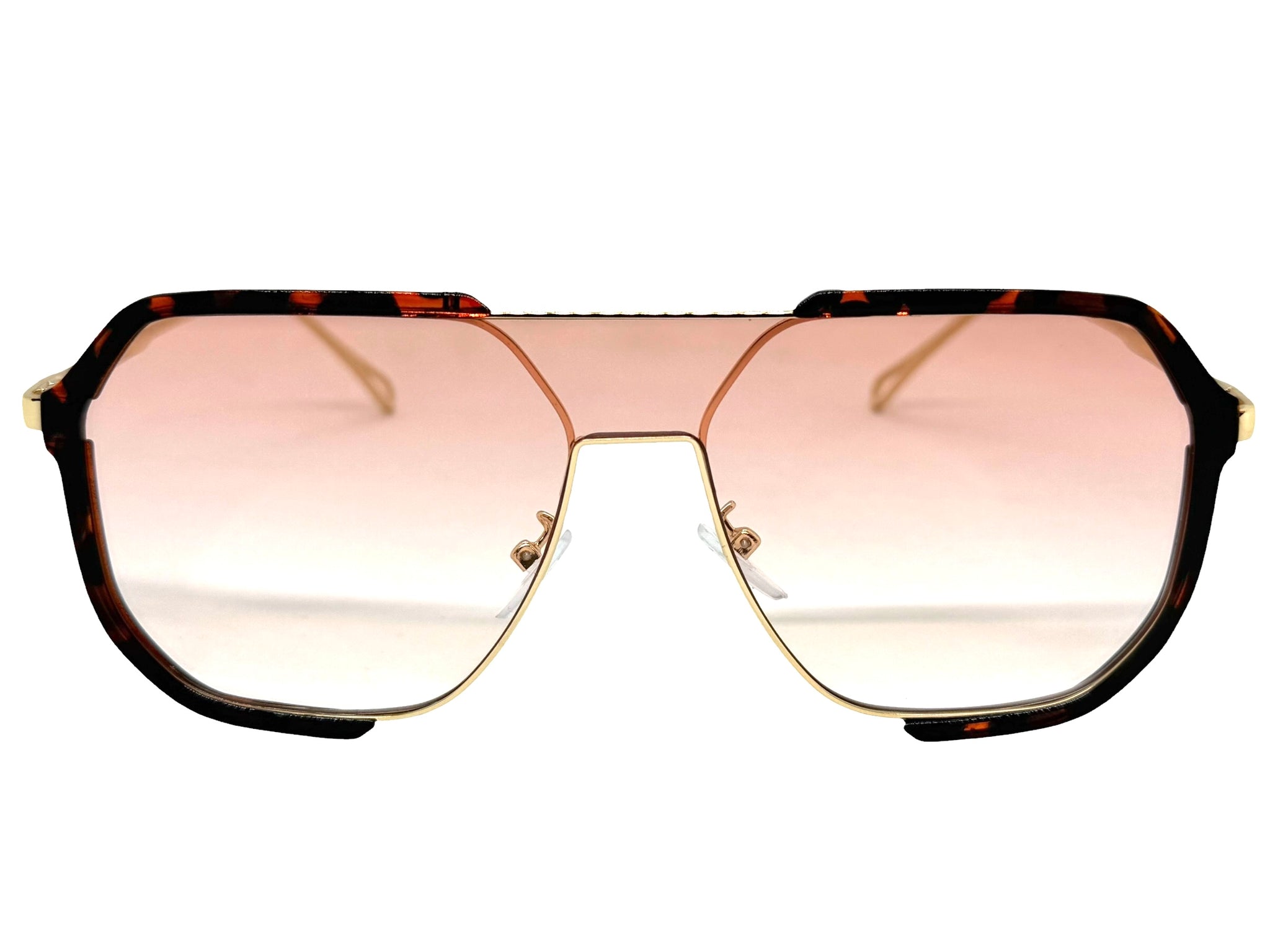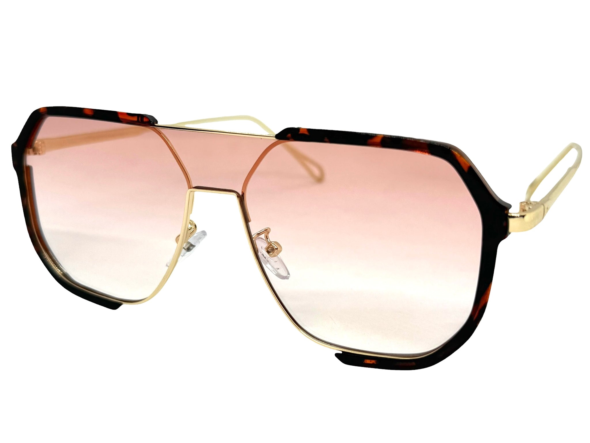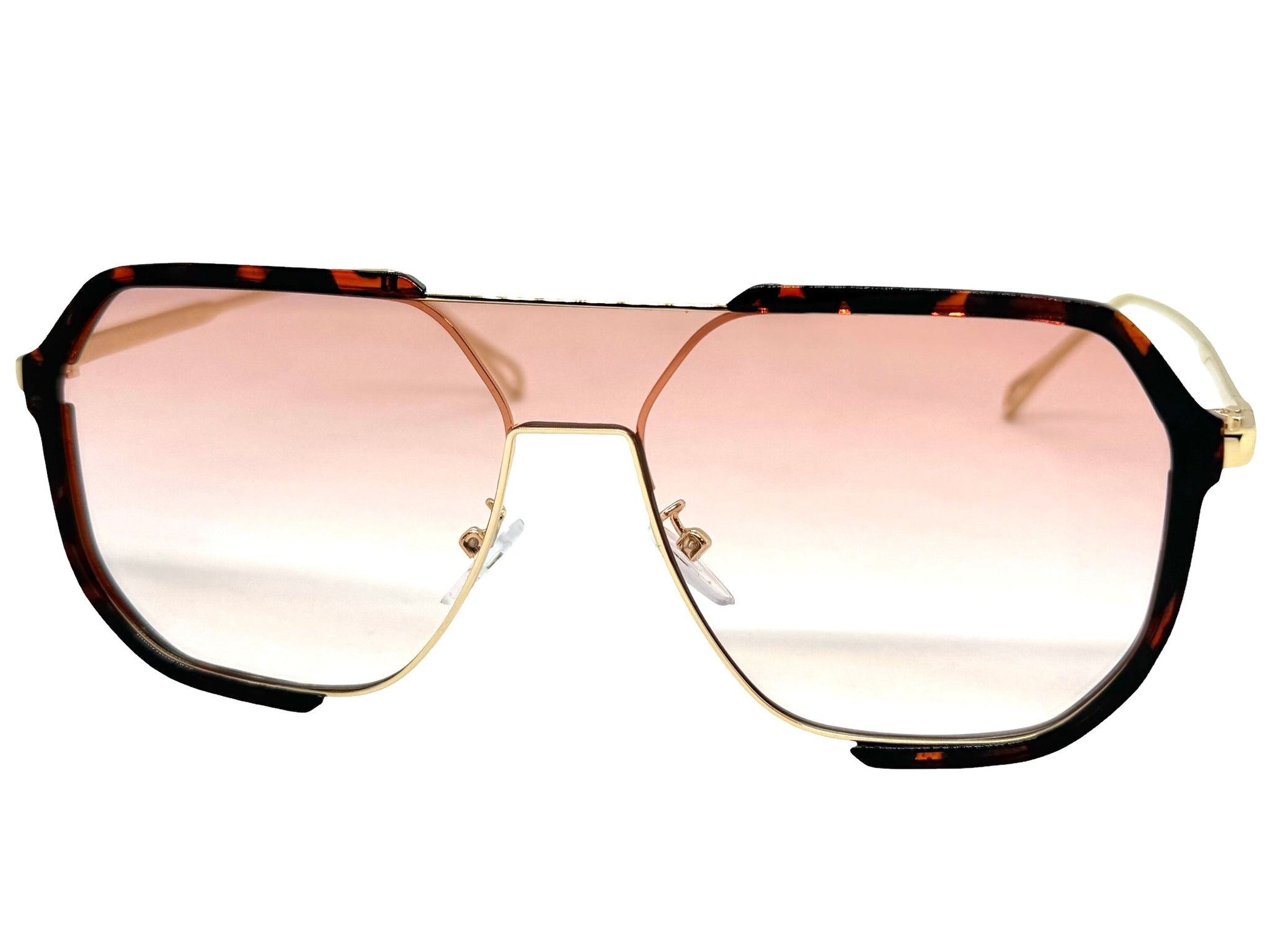 Classy Trendy Bold Modern Retro Shield Style SUNGLASSES Tortoise Frame - Light Pink Lens 5399