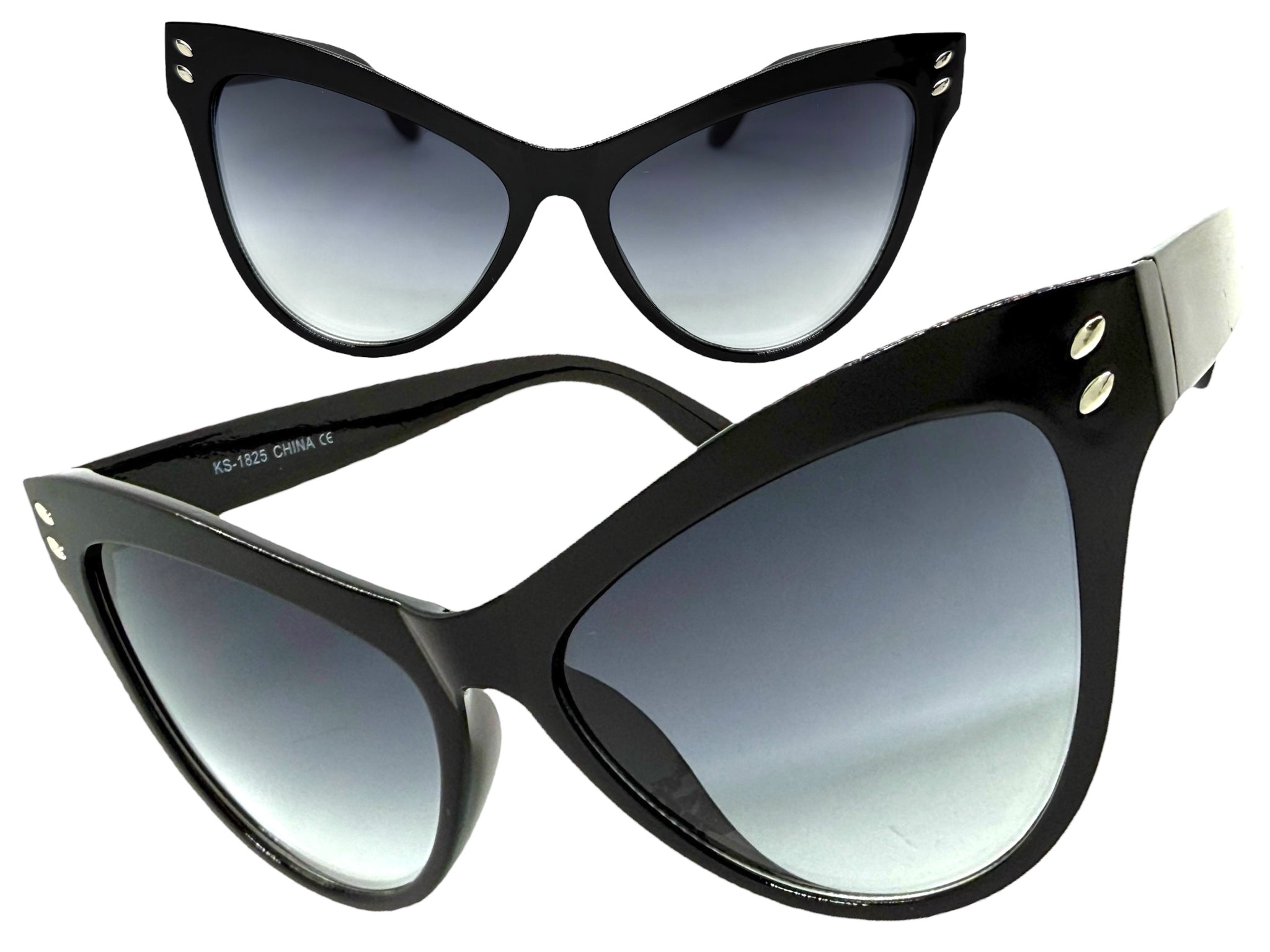Oversized Exaggerated Classic Vintage Retro Cat Eye Style SUNGLASSES Large Black Frame 1825