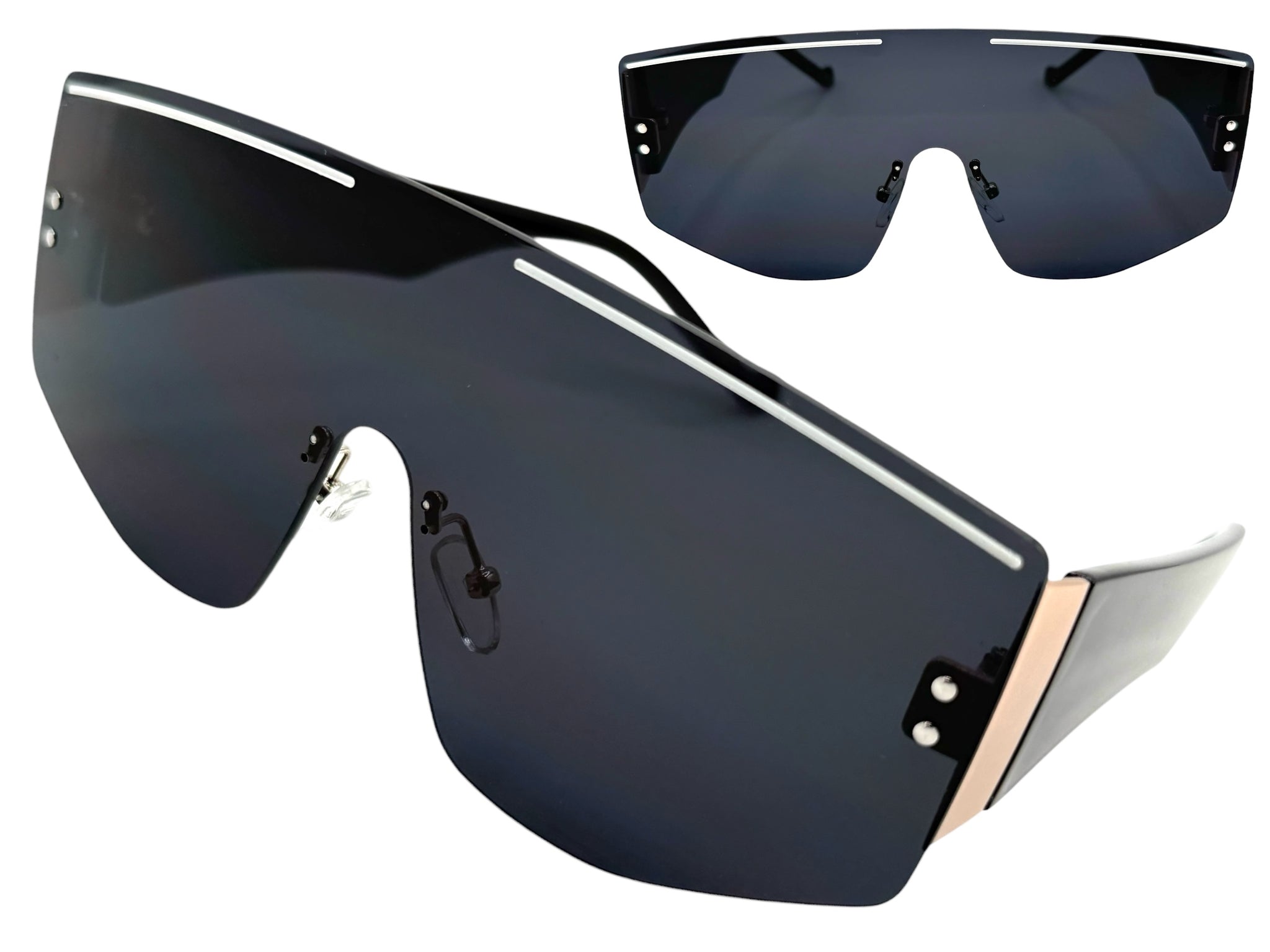 Oversized Futuristic Modern Retro Shield Style SUNGLASSES Large Flat Dark Lens 10858