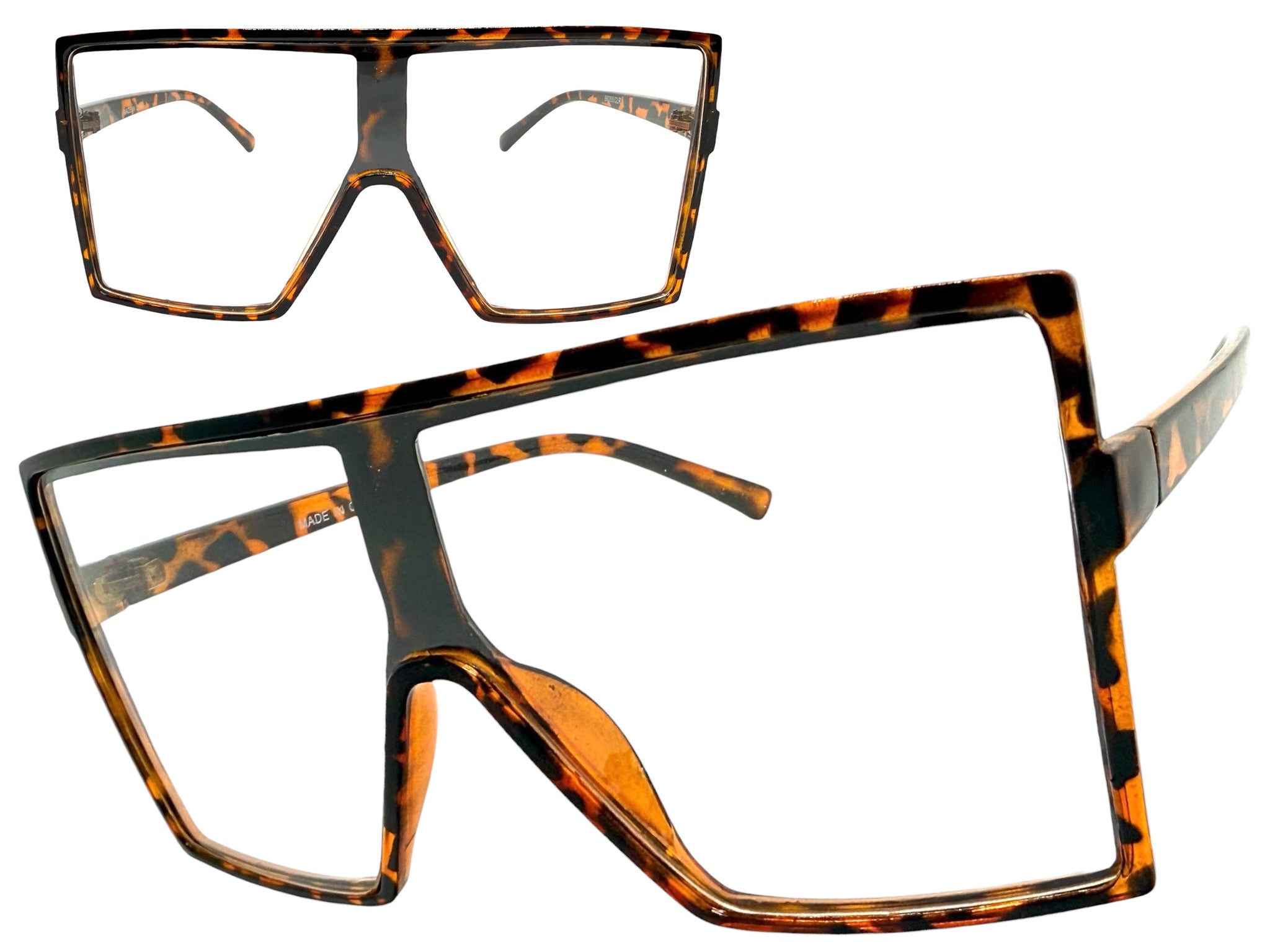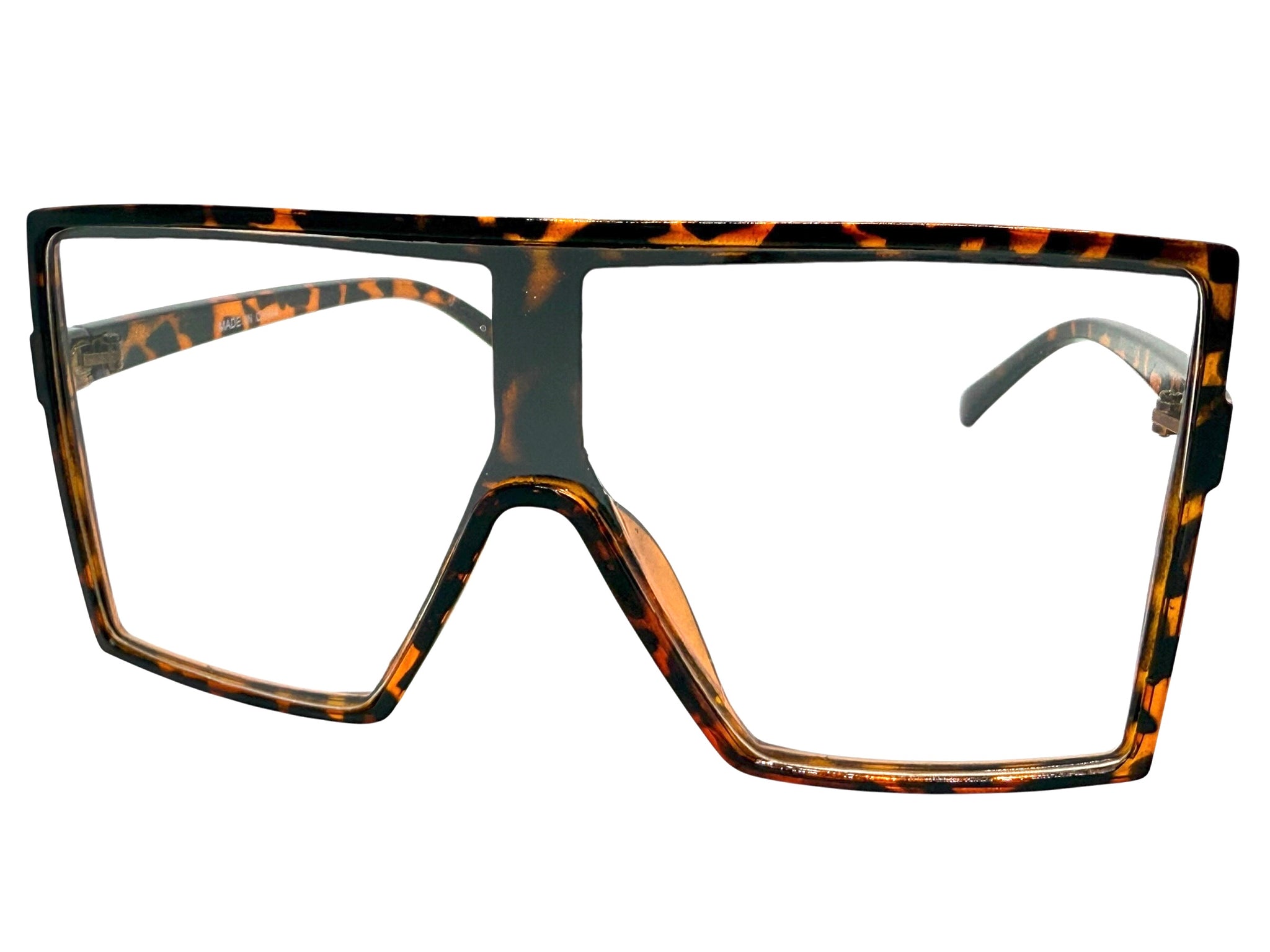 Oversized Modern Retro Shield Style Clear Lens EYEGLASSES X-Large Tortoise Frame 89265
