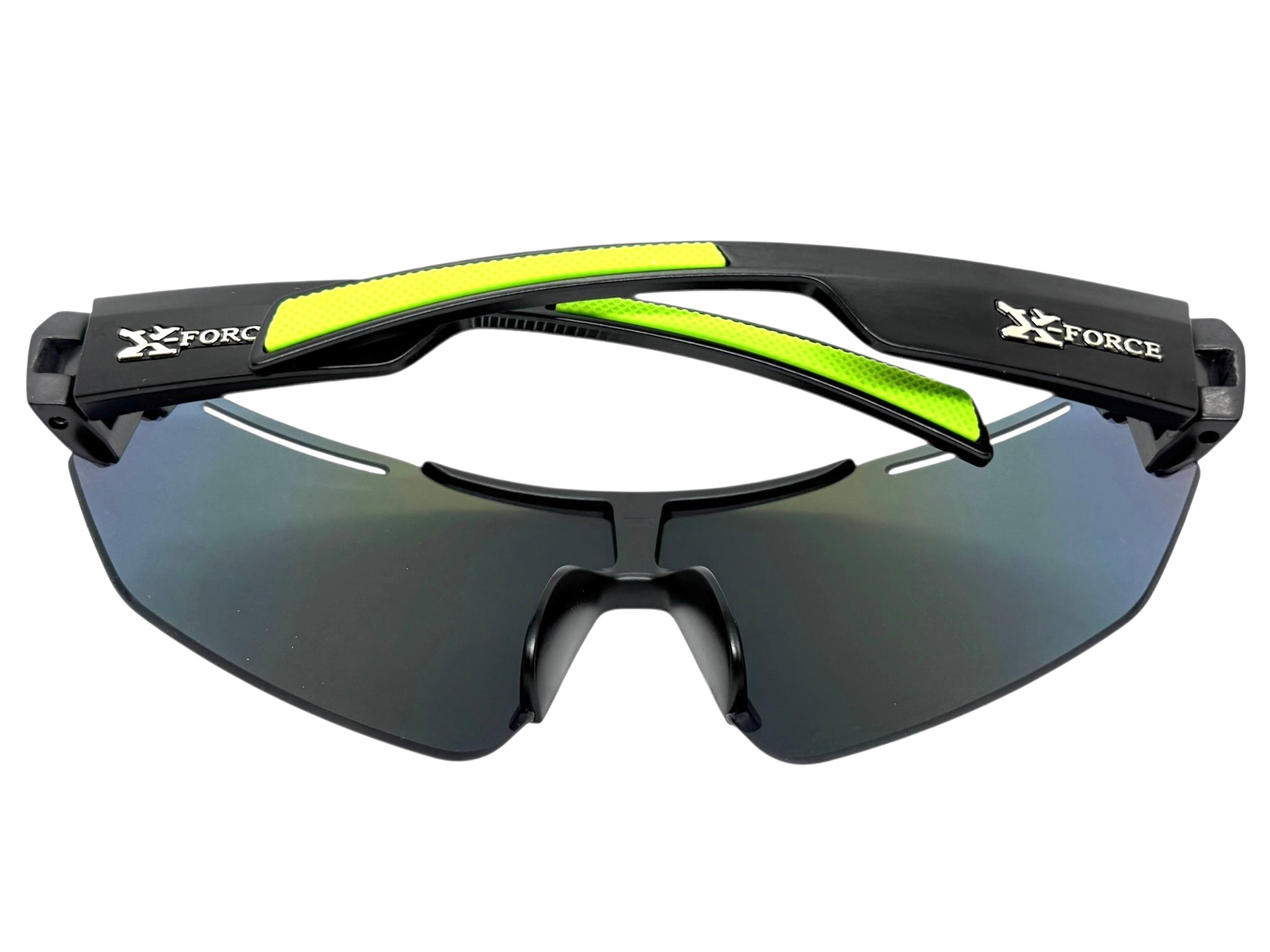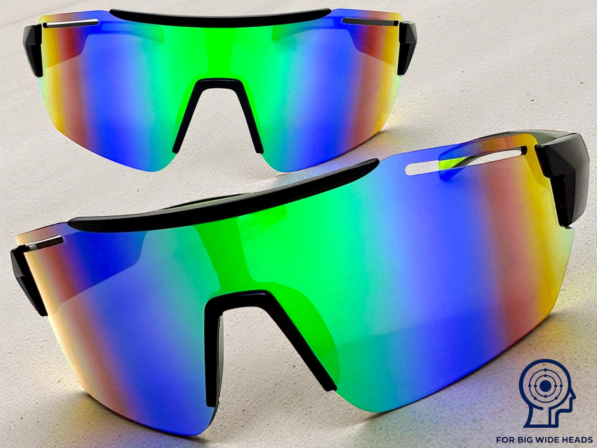 Oversized Sporty Wrap Around Cycling Fishing Biker SUNGLASSES Large Black Frame - Green & Blue Lens 5204
