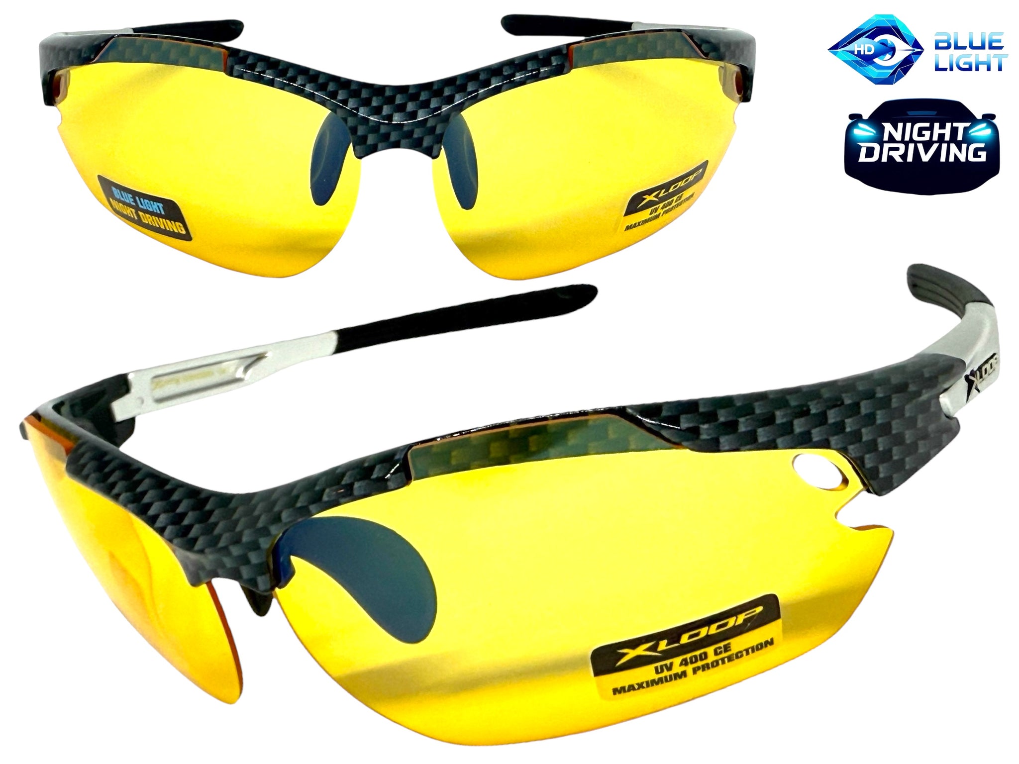 Sporty Wrap Around Blue Light Night Driving HD Lens SUNGLASSES Carbon Fiber Frame 3501