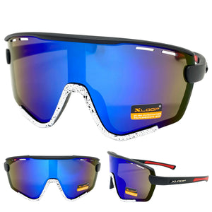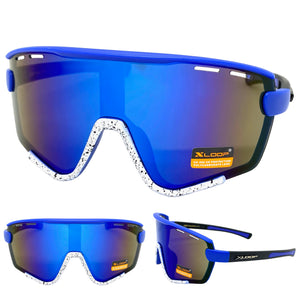 Oversized Retro Sporty Wrap Around Style SUNGLASSES Large Black & Blue Frame B0276