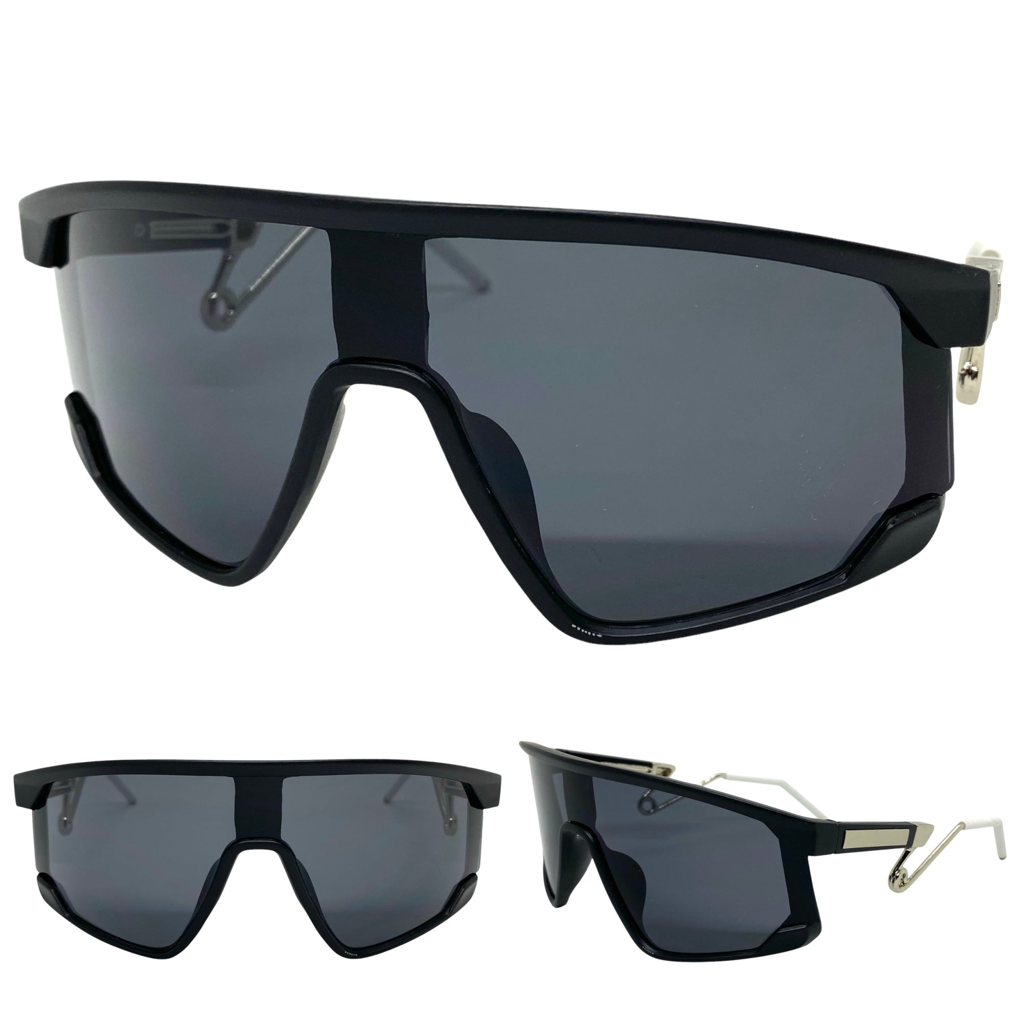 Oversized Retro Sporty Wrap Around Style SUNGLASSES Large Black Frame B0273