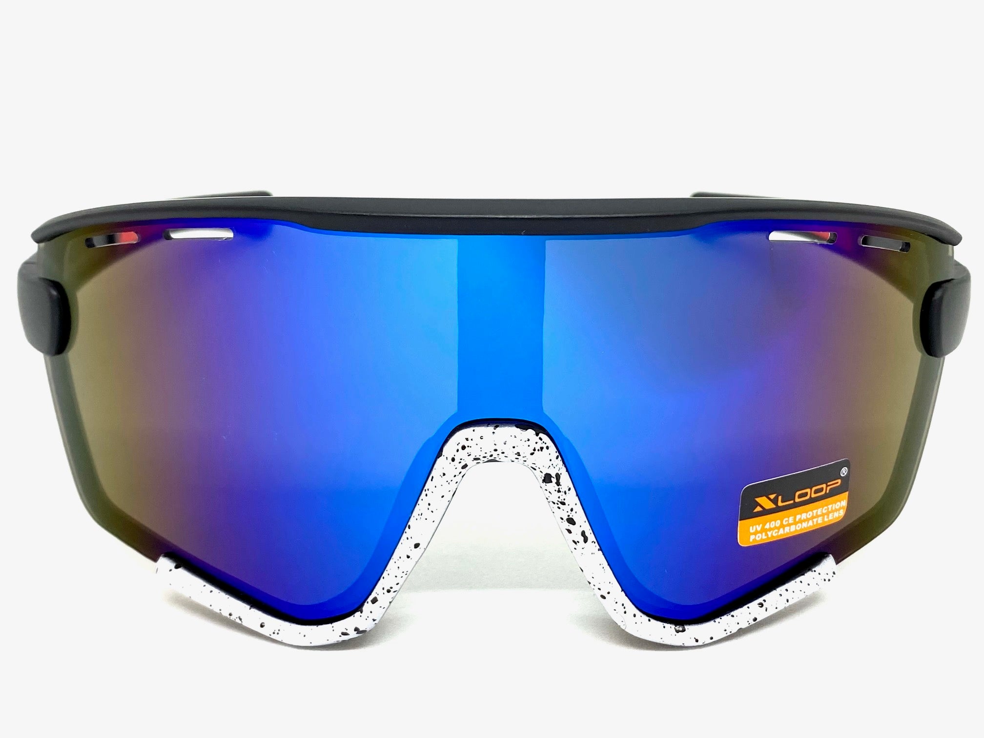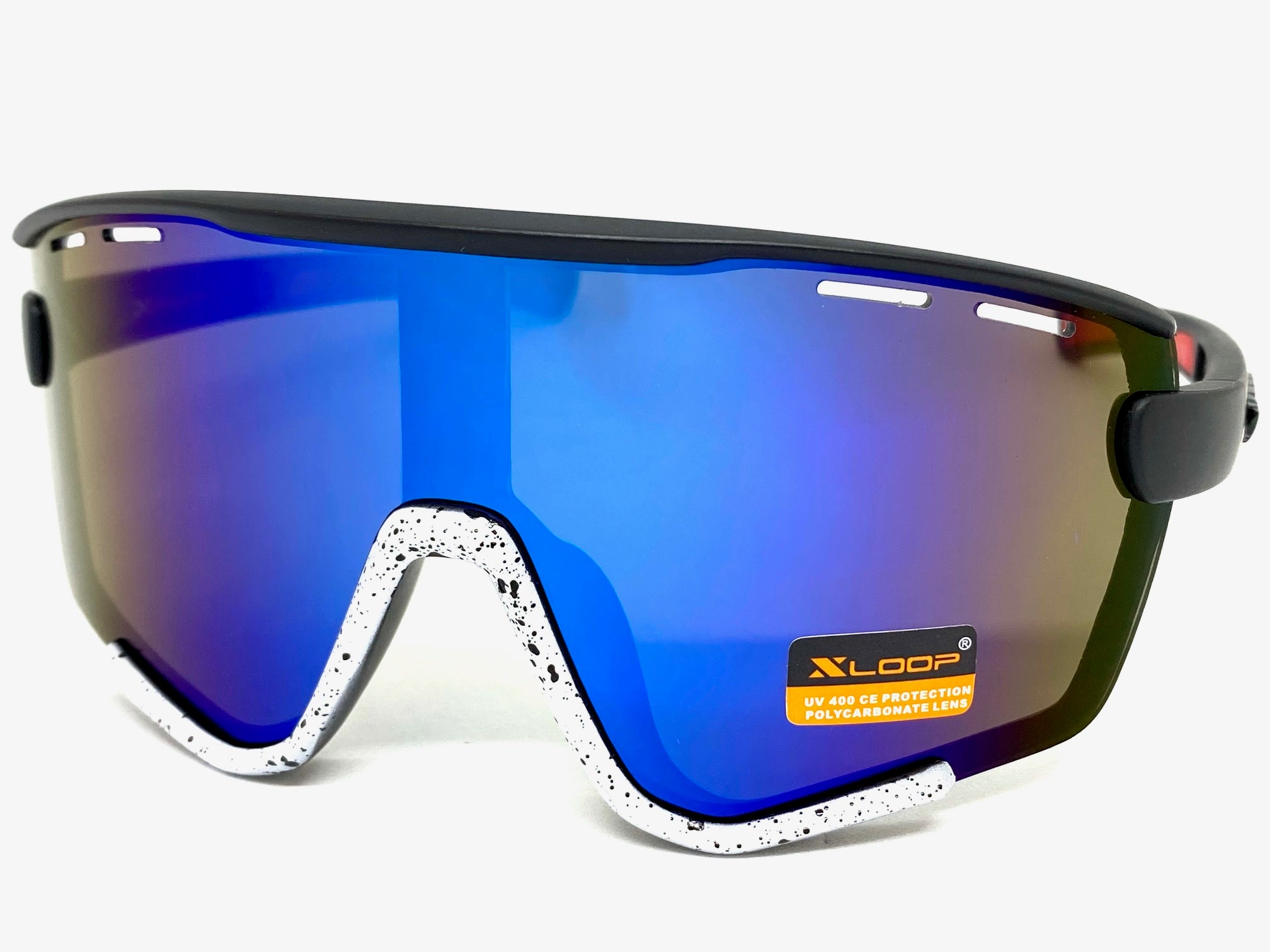 Oversized Retro Sporty Wrap Around Style SUNGLASSES Large Black & White Frame 3694