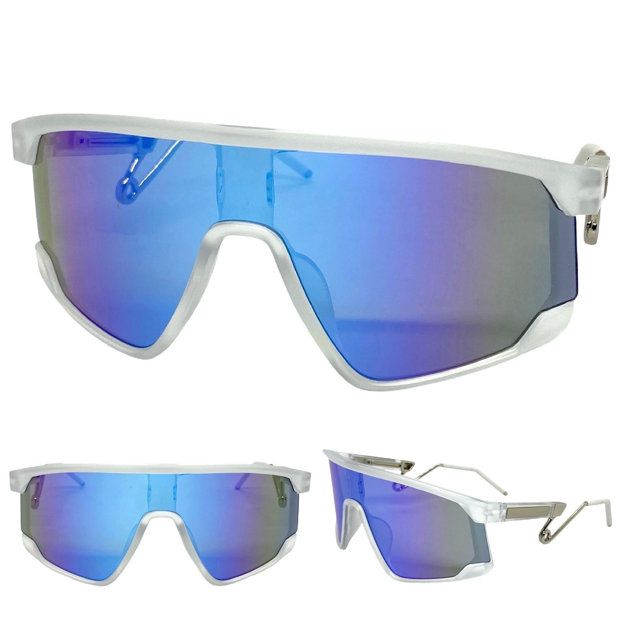 Oversized Retro Sporty Wrap Around Style SUNGLASSES Large Frosted Frame B0273