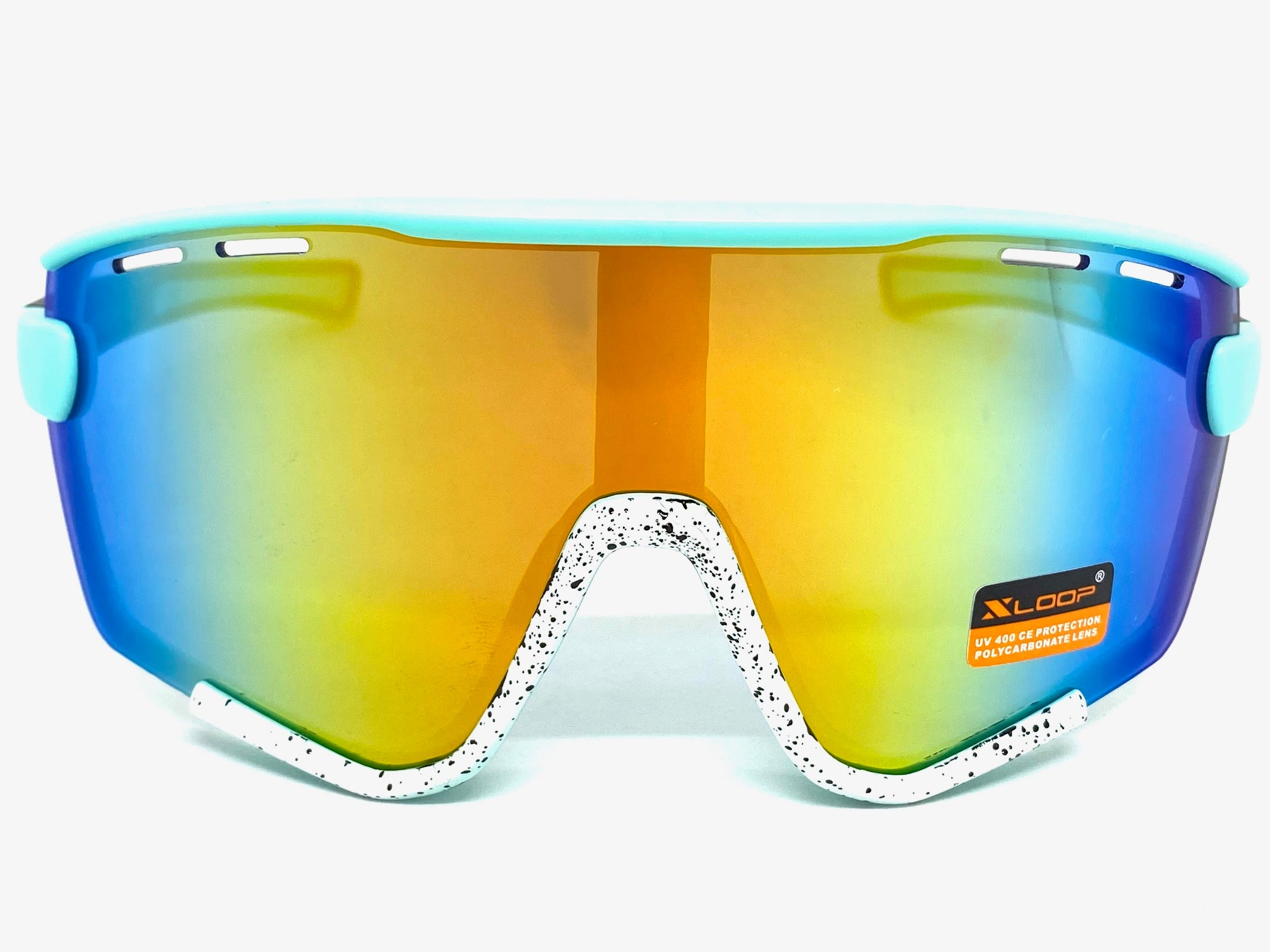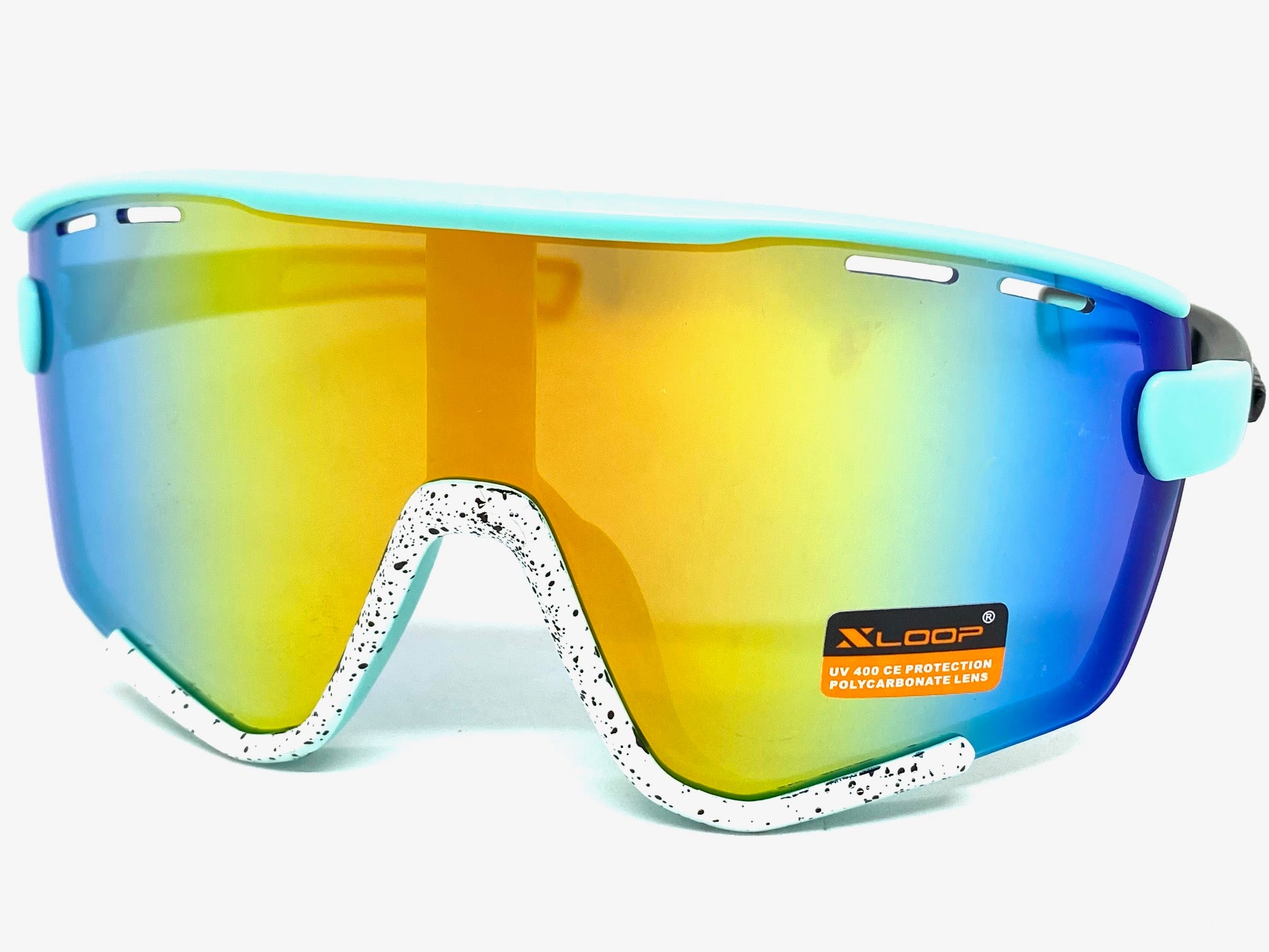 Oversized Retro Sporty Wrap Around Style SUNGLASSES Large Aqua & White Frame 3694