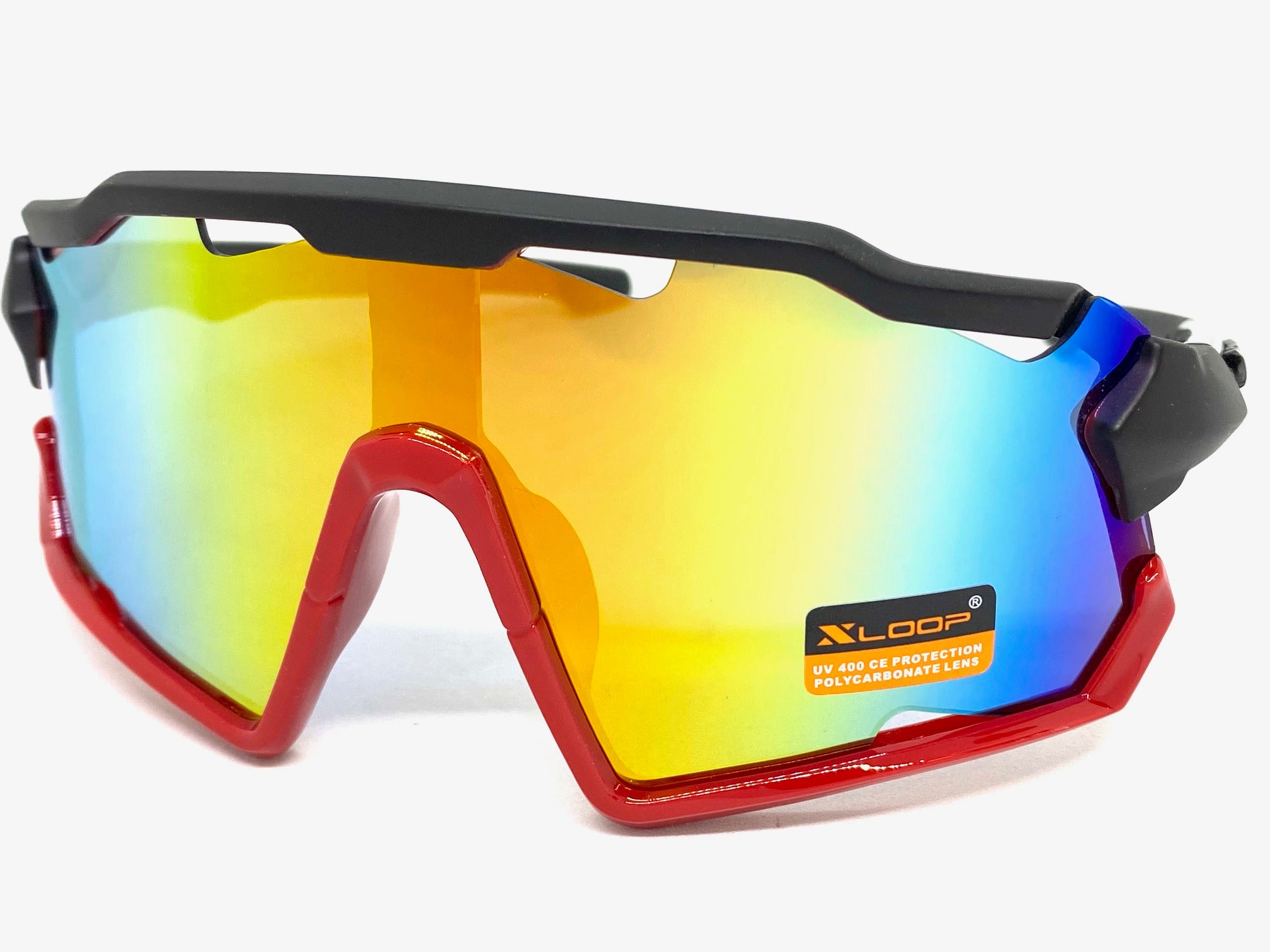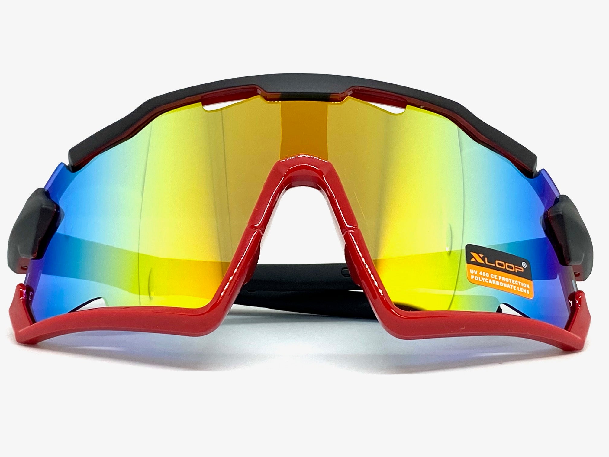 Oversized Retro Sporty Wrap Around Style SUNGLASSES Large Black & Red Frame 3693