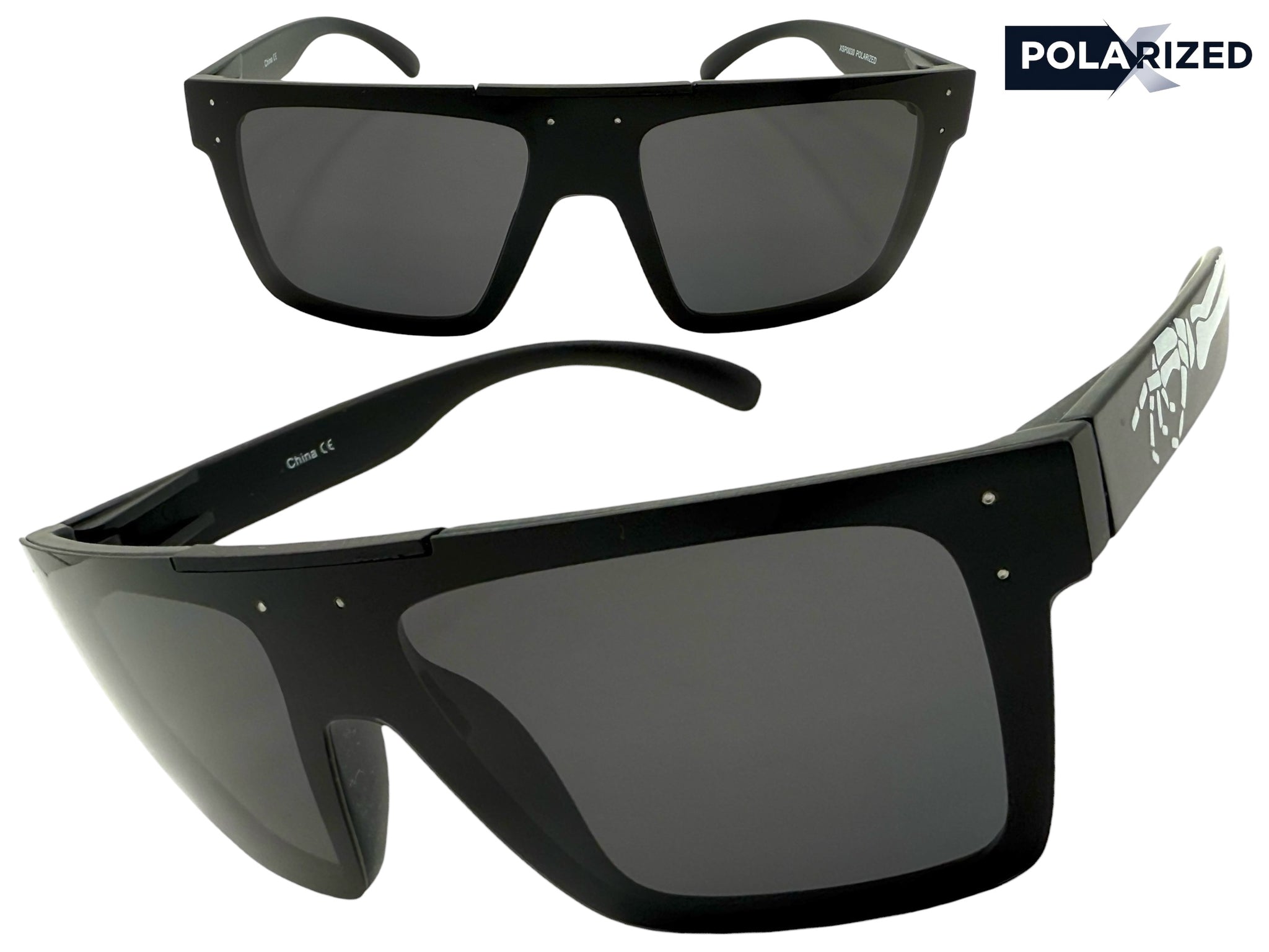 Classic Hardcore Biker Gangster Wrap Shield Style POLARIZED SUNGLASSES Black Frame - Dark Lens X0030