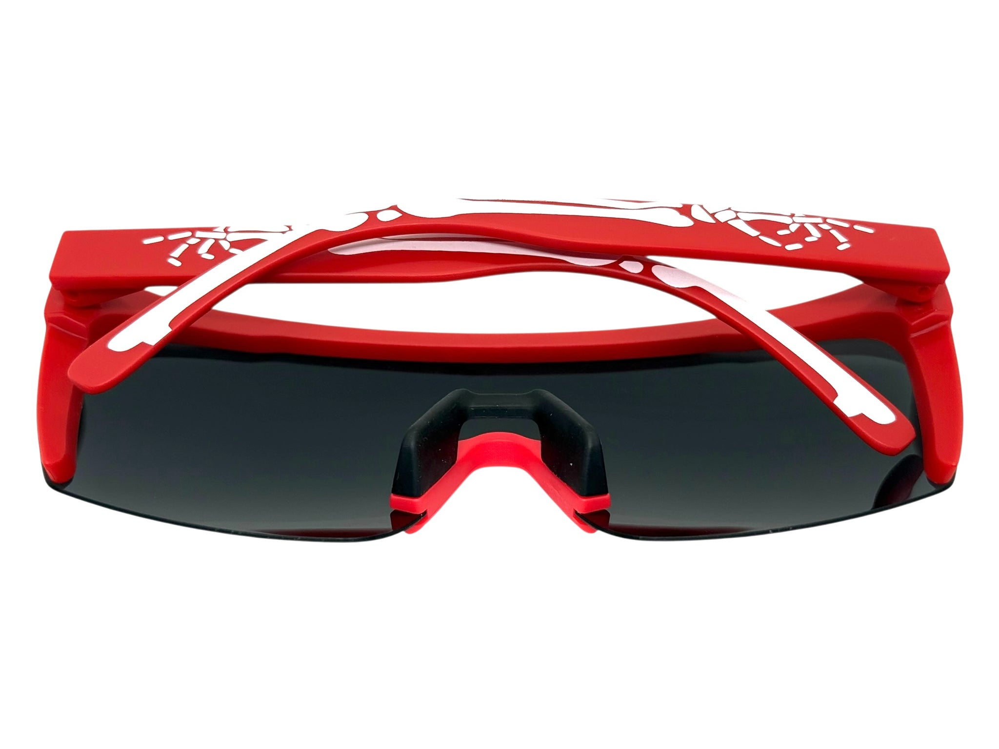 Classic Hardcore Biker Gangster Wrap Shield Style POLARIZED SUNGLASSES Red Frame - Dark Lens X0018