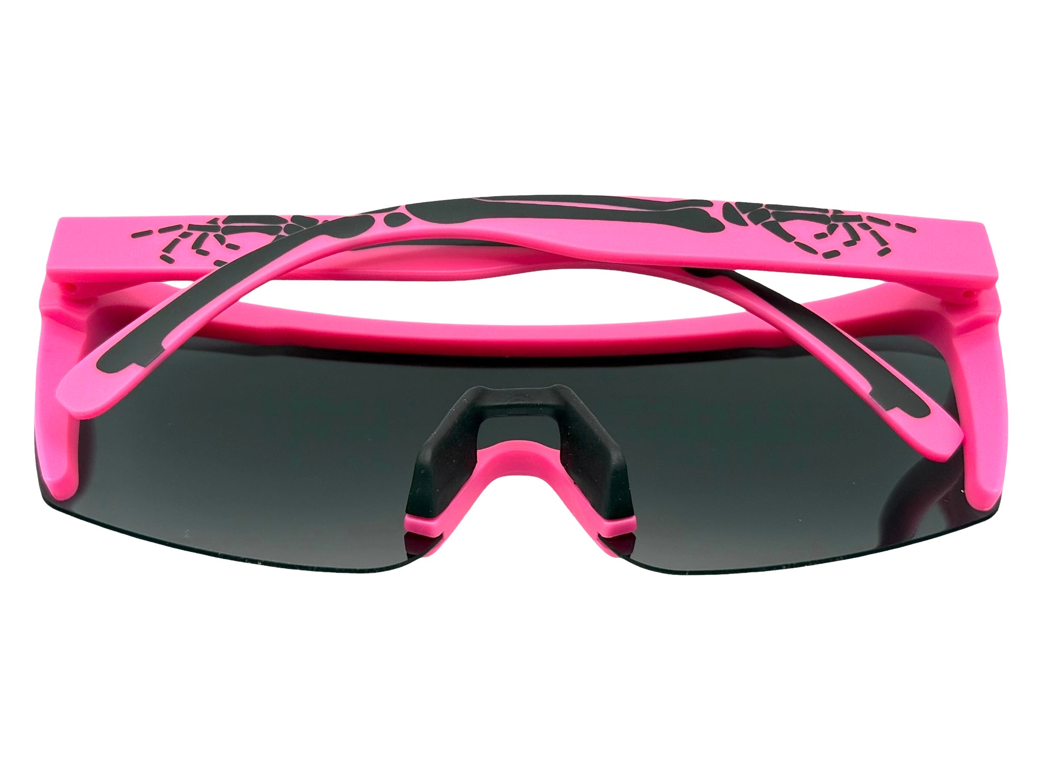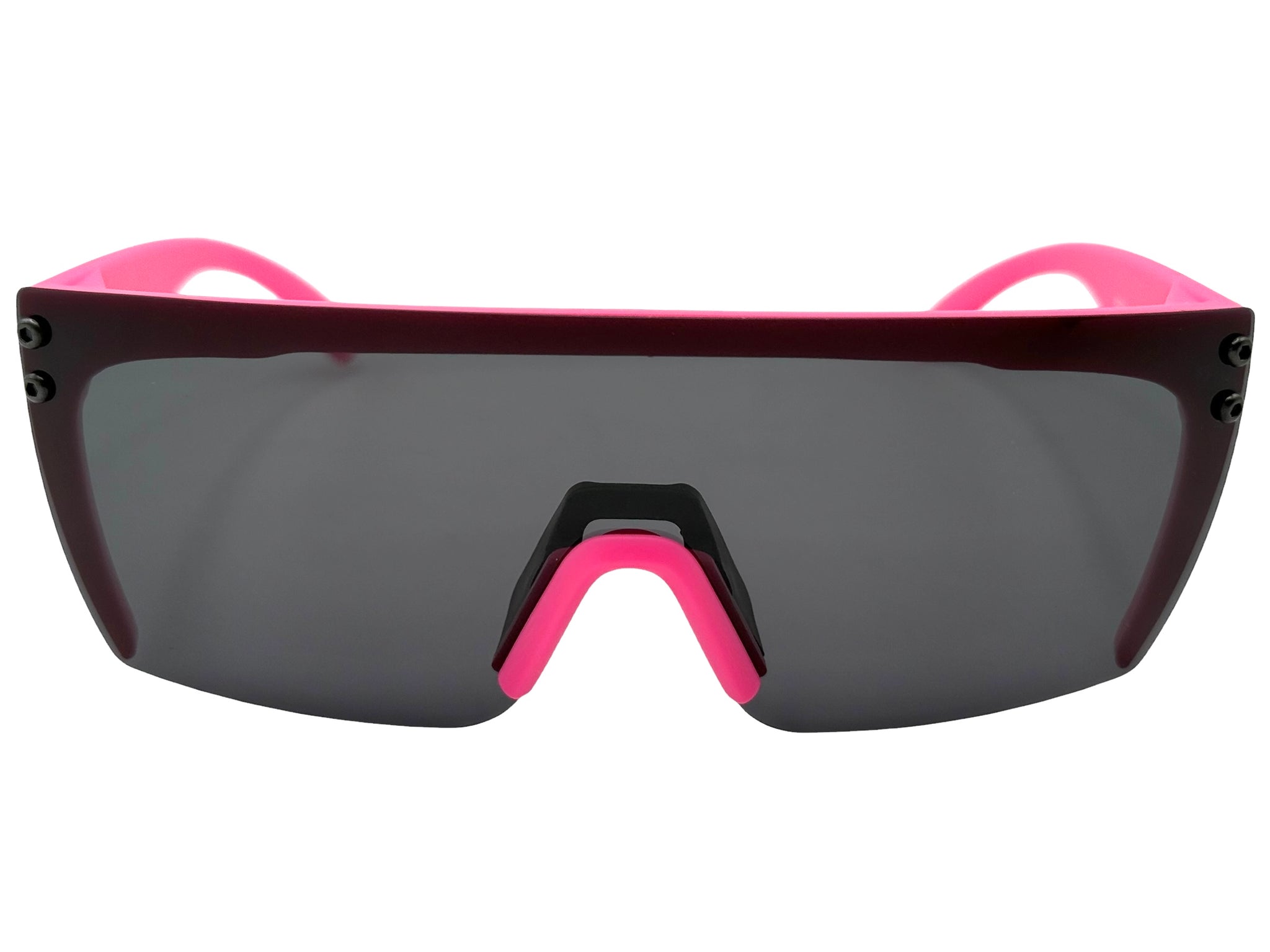 Classic Hardcore Biker Gangster Wrap Shield Style POLARIZED SUNGLASSES Neon Pink Frame - Dark Lens X0018