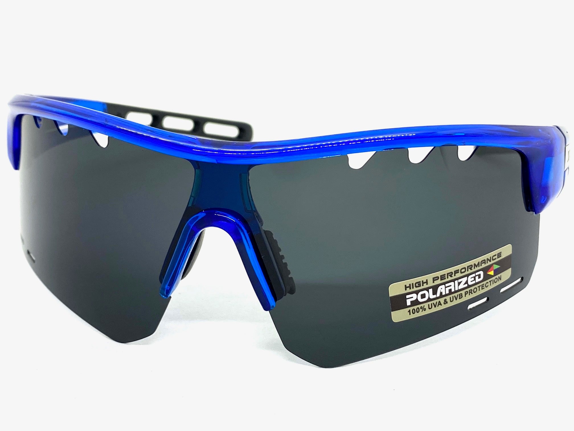 Oversized Sporty Wrap Around POLARIZED Lens SUNGLASSES Large Blue Frame 3652