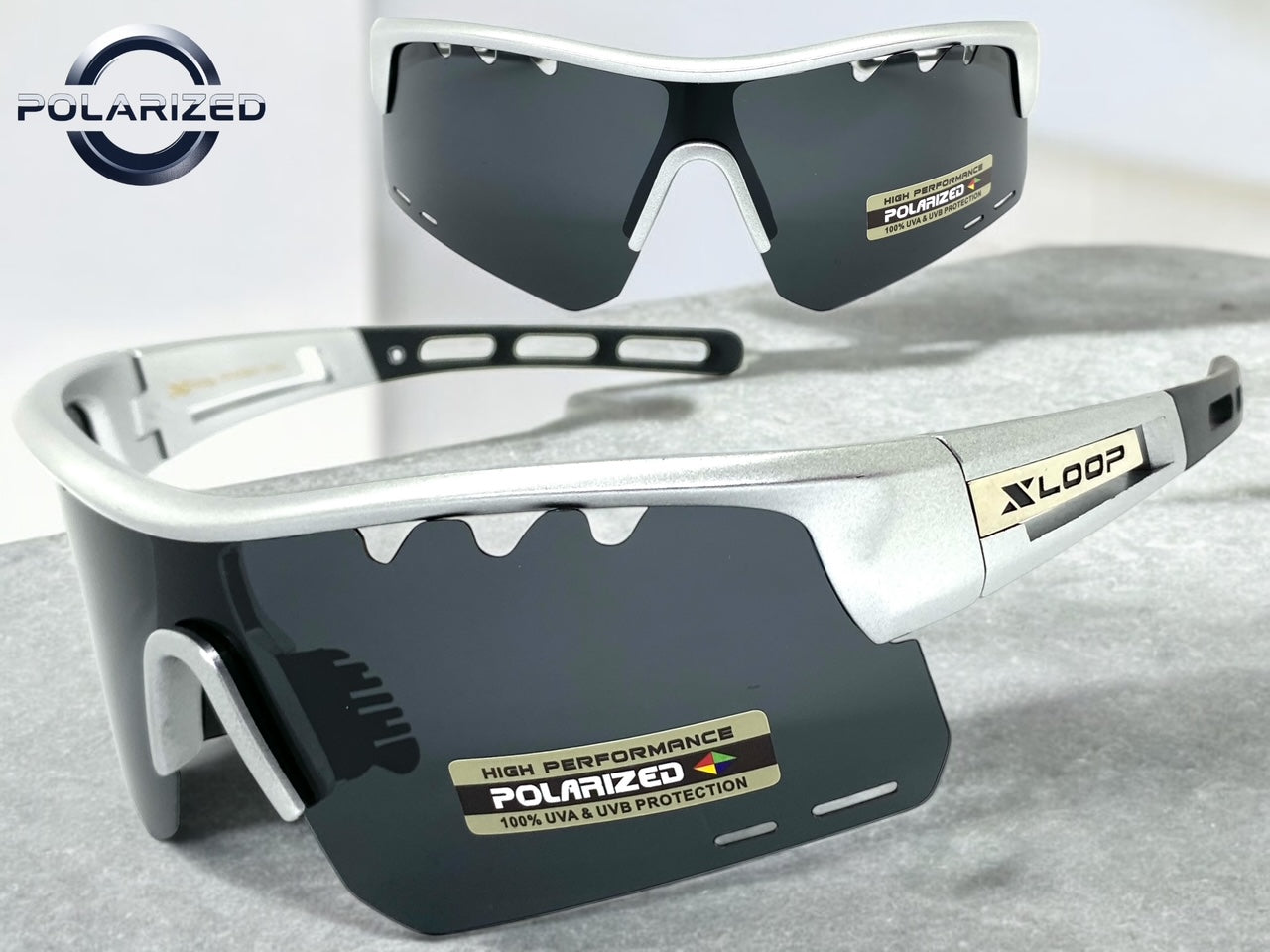 Oversized Sporty Wrap Around POLARIZED Lens SUNGLASSES Large Silver Frame 3652