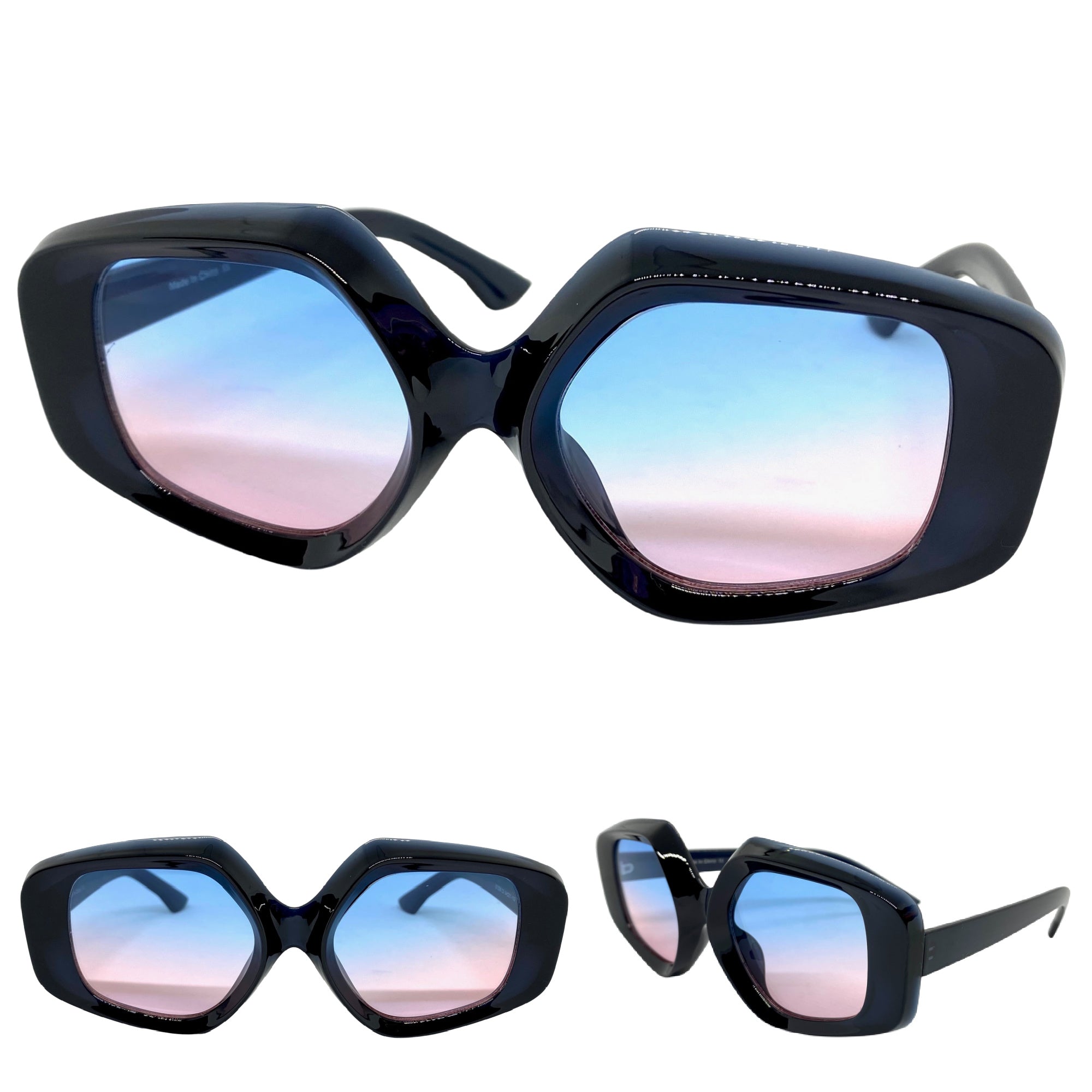 Exaggerated Vintage Retro Style SUNGLASSES Large Black Frame 1220