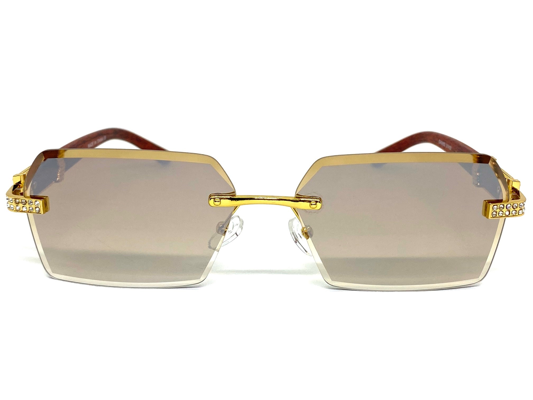 Men's Classy Elegant Luxury Designer Hip Hop Style SUNGLASSES Gold & Wooden Frame E0883