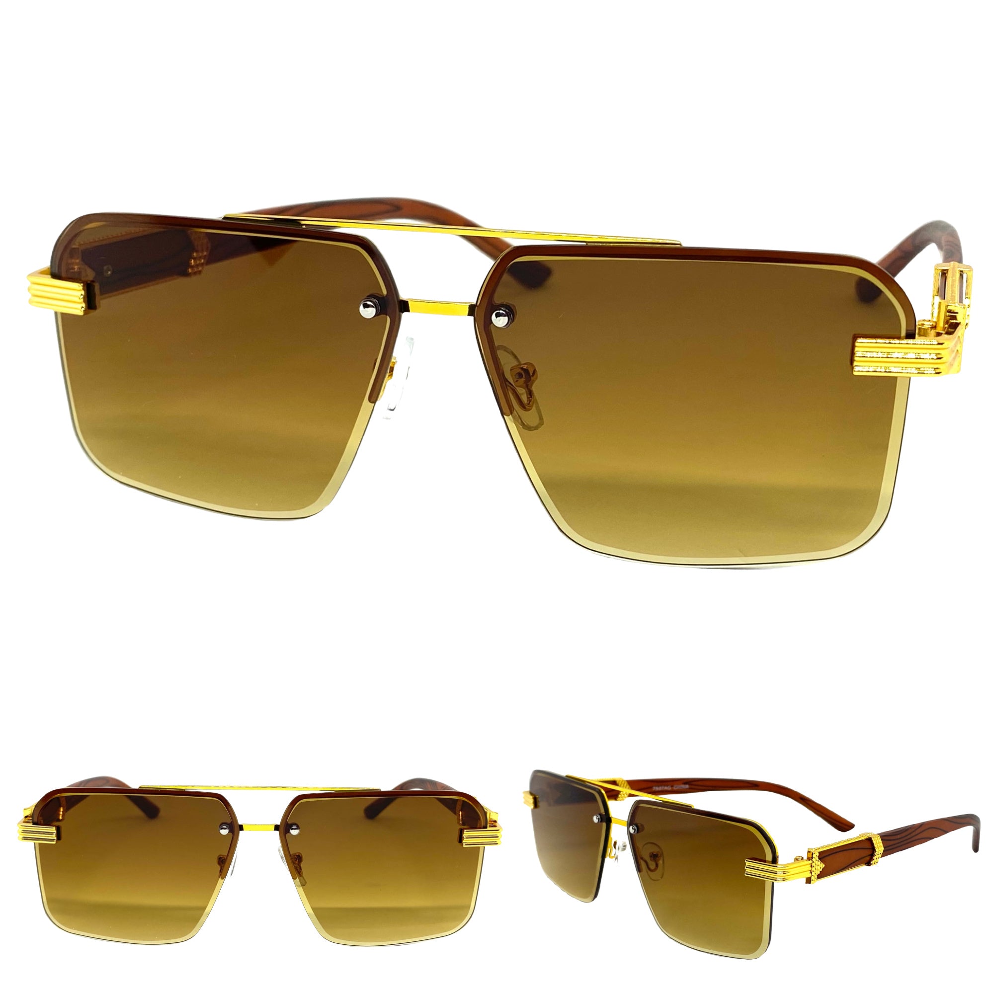 Men's Classy Elegant Luxury Designer Hip Hop Style SUNGLASSES Gold & Wooden Frame WD769