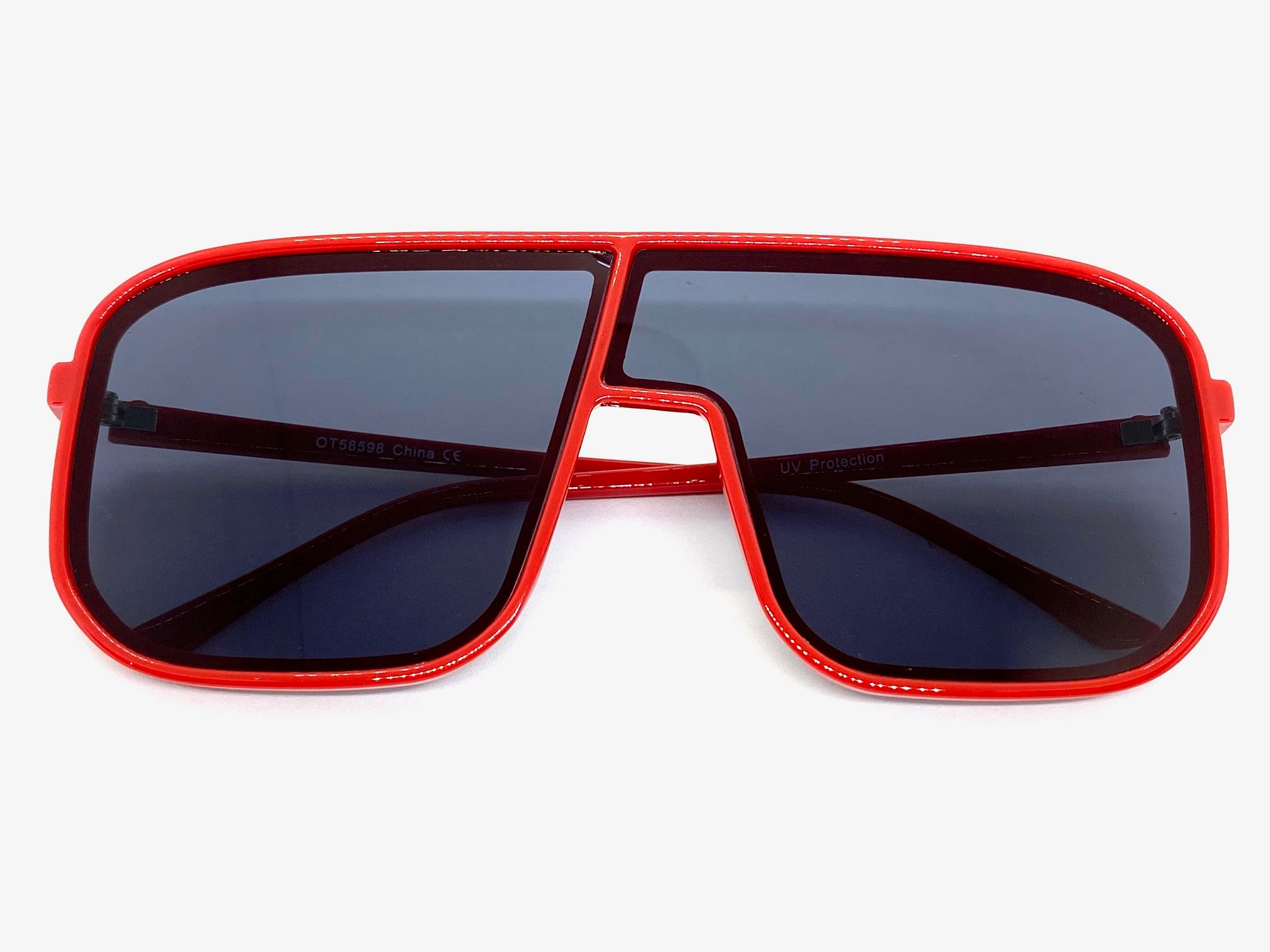 Oversized Modern Retro Shield Style SUNGLASSES Large Red Frame 58598
