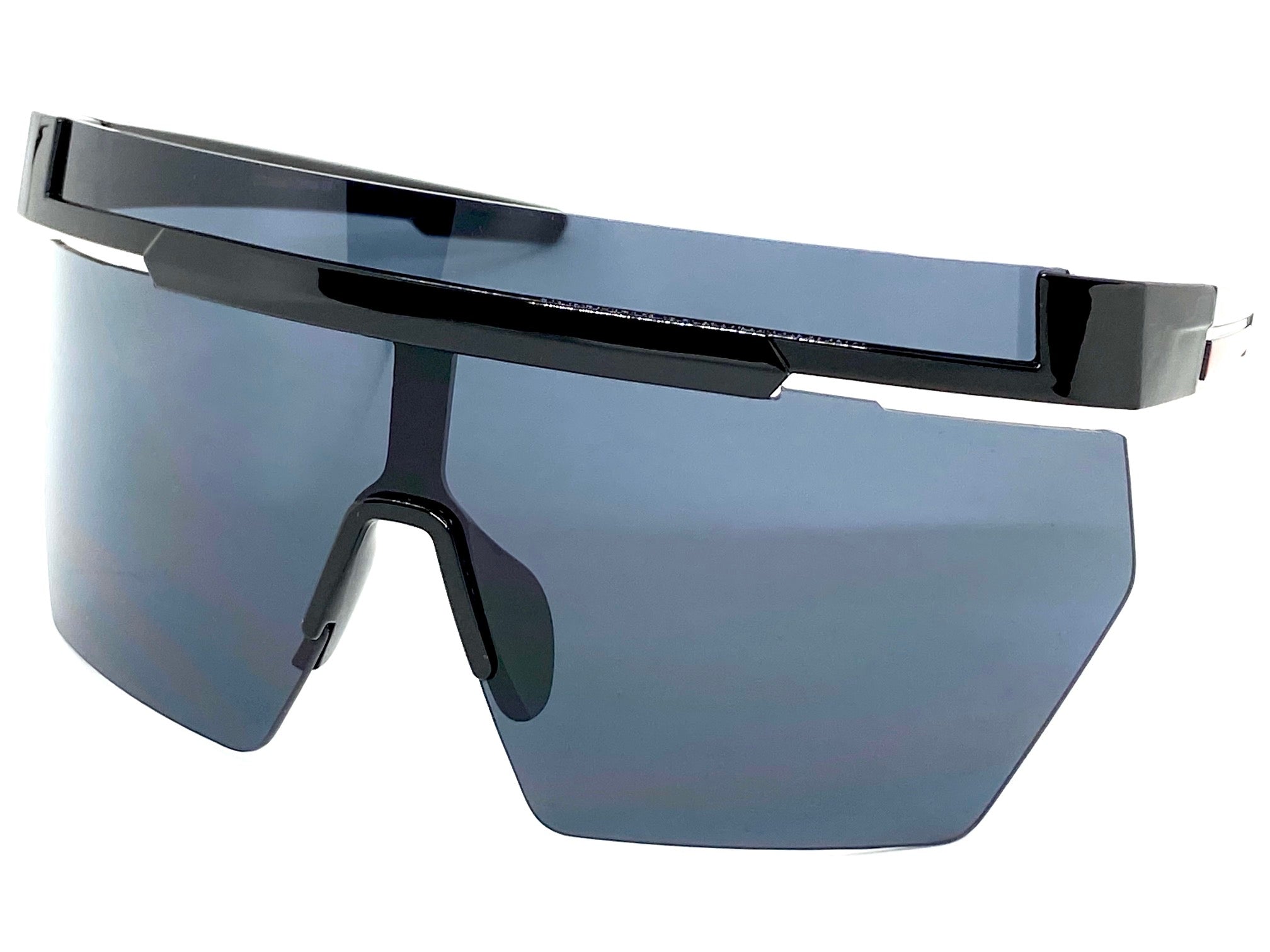 Oversized Retro Sporty Wrap Around Shield Style SUNGLASSES Large Black Frame 59087