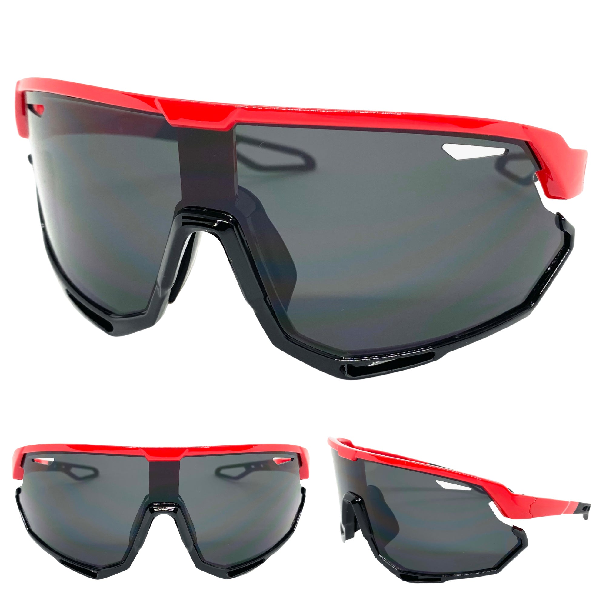 Oversized Retro Sporty Wrap Around Style SUNGLASSES Large Red Frame 80379
