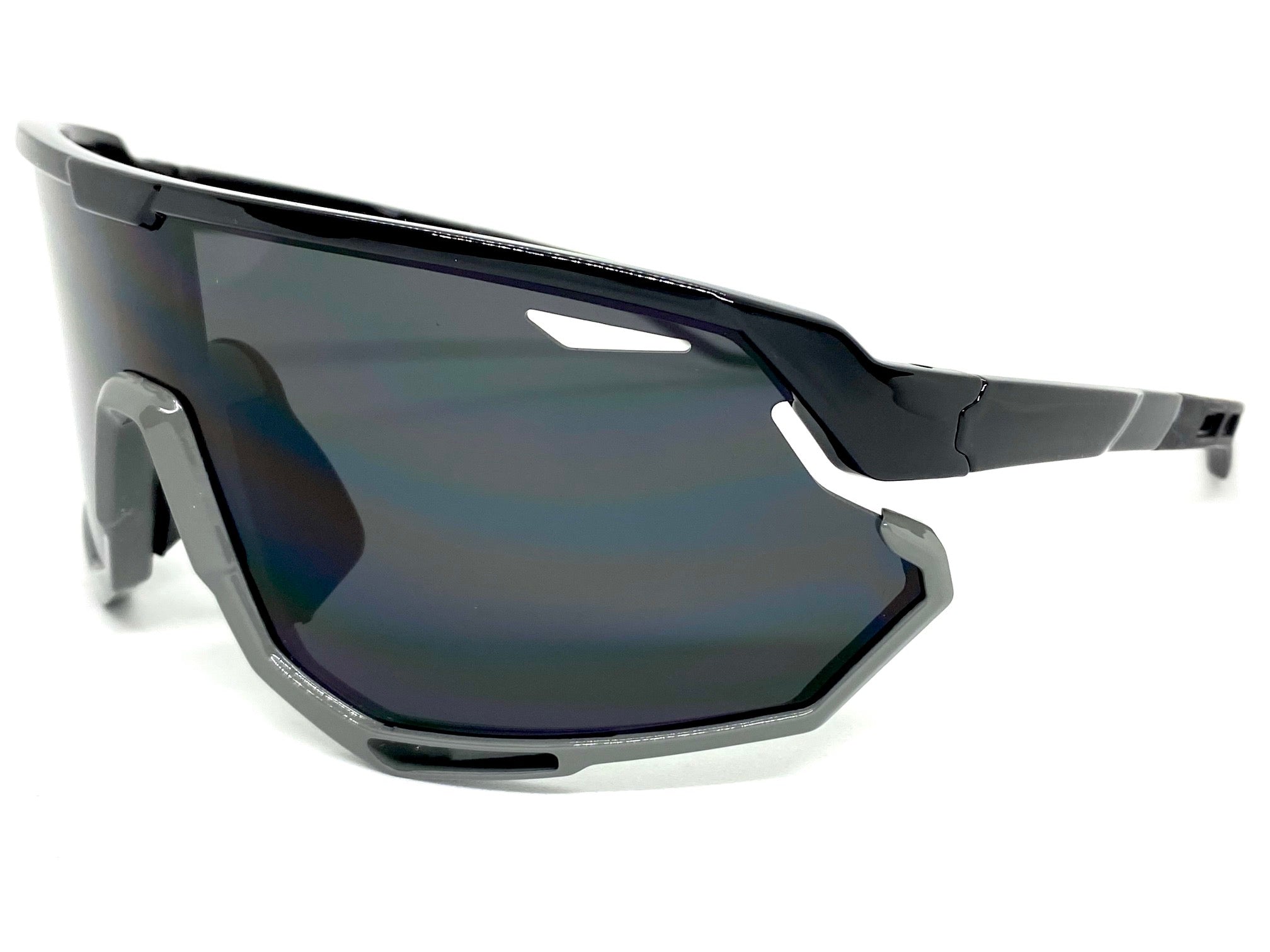 Oversized Retro Sporty Wrap Around Style SUNGLASSES Large Black Frame 80379