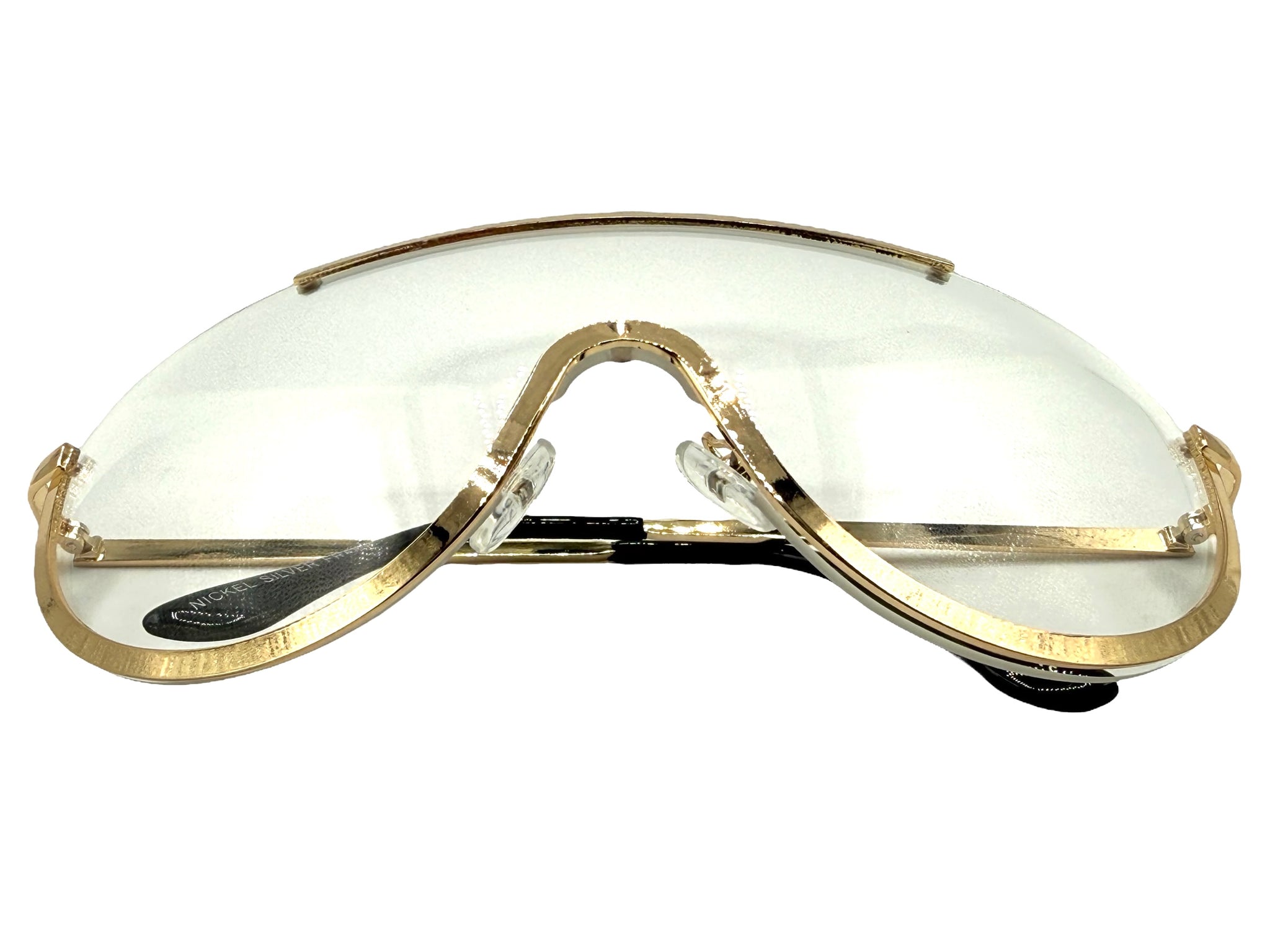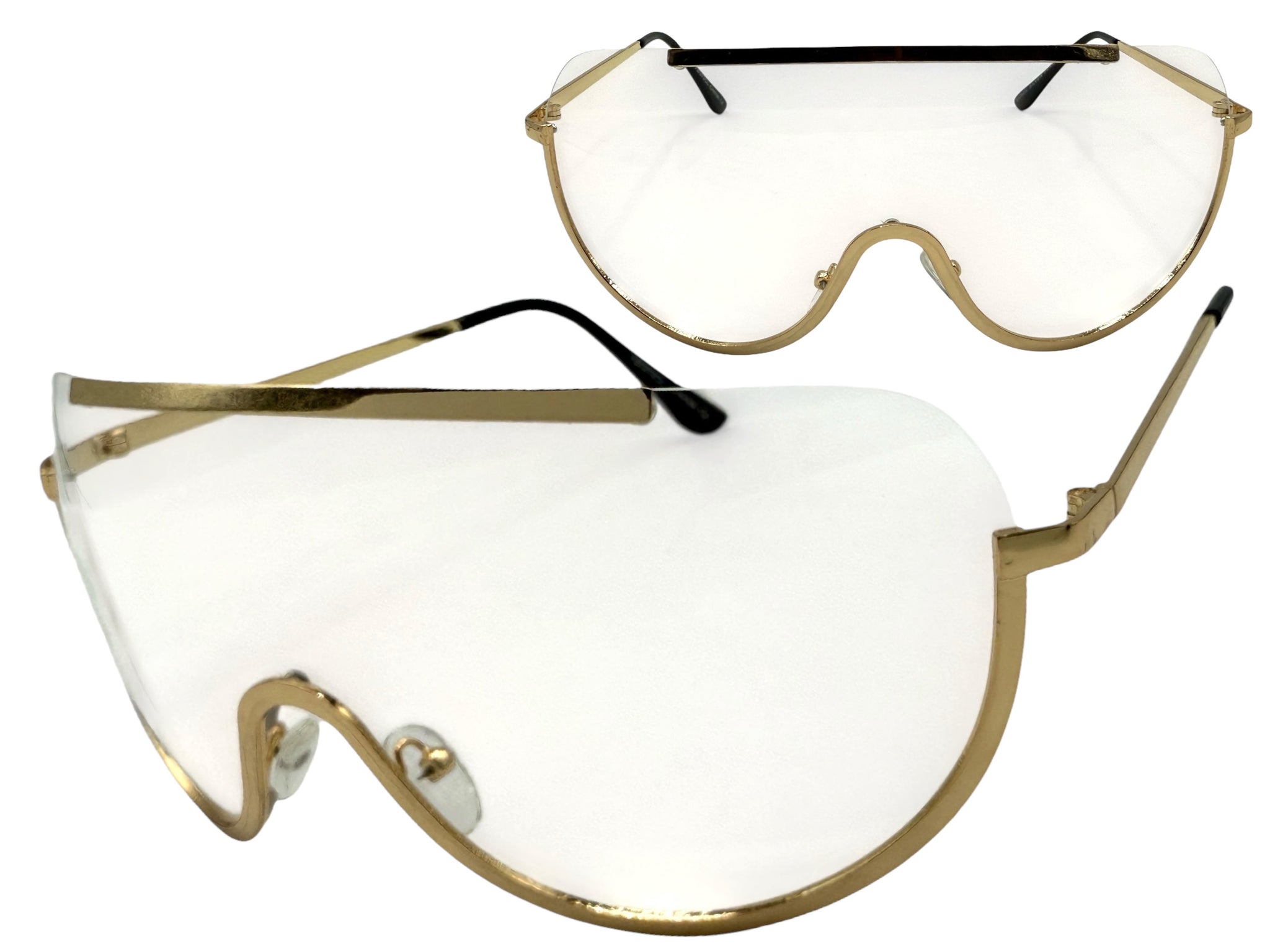 Oversized Modern Retro Shield Style Party Raver SUNGLASSES Large Gold Frame AB303