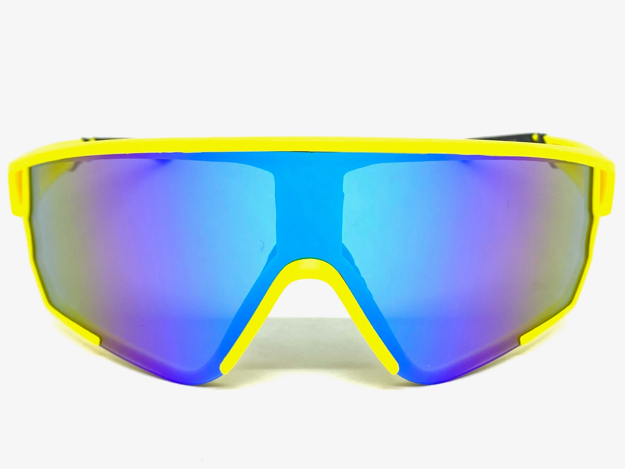 Oversized Retro Sporty Wrap Around Style SUNGLASSES Large Neon Yellow Frame 9046