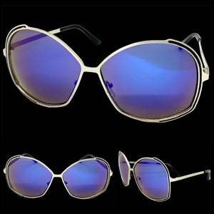Oversized Exaggerated Vintage Retro Style SUNGLASSES Large Round Silver Frame 8537