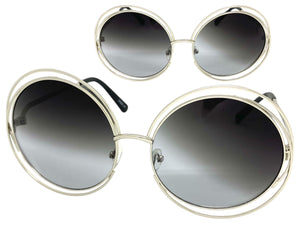 Oversized Exaggerated Vintage Retro Style SUNGLASSES Large Round Silver Frame 3590