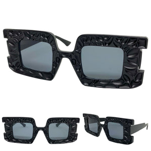 Oversized Exaggerated Vintage Retro Style SUNGLASSES Large Square Black Frame 1318