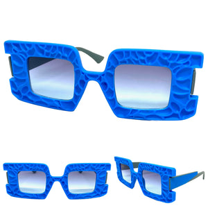Oversized Exaggerated Vintage Retro Style SUNGLASSES Large Square Blue Frame 1318