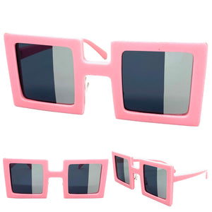 Oversized Exaggerated Vintage Retro Style SUNGLASSES Large Square Pink Frame 1317