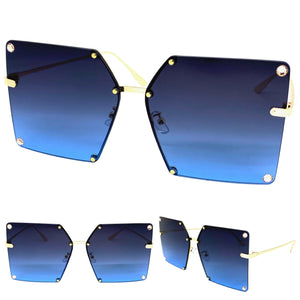 Oversized Exaggerated Vintage Retro Style SUNGLASSES Large Square Blue Lens 2338